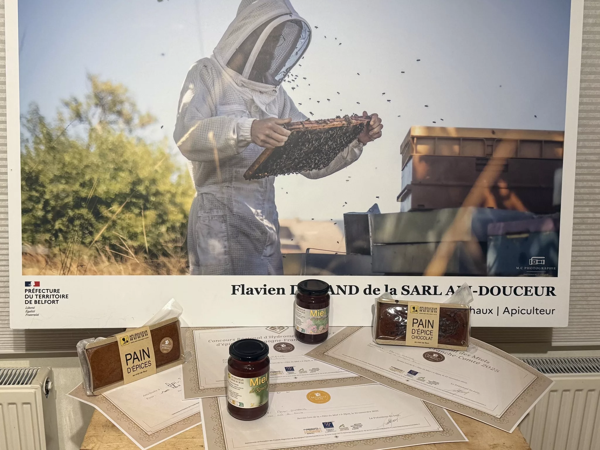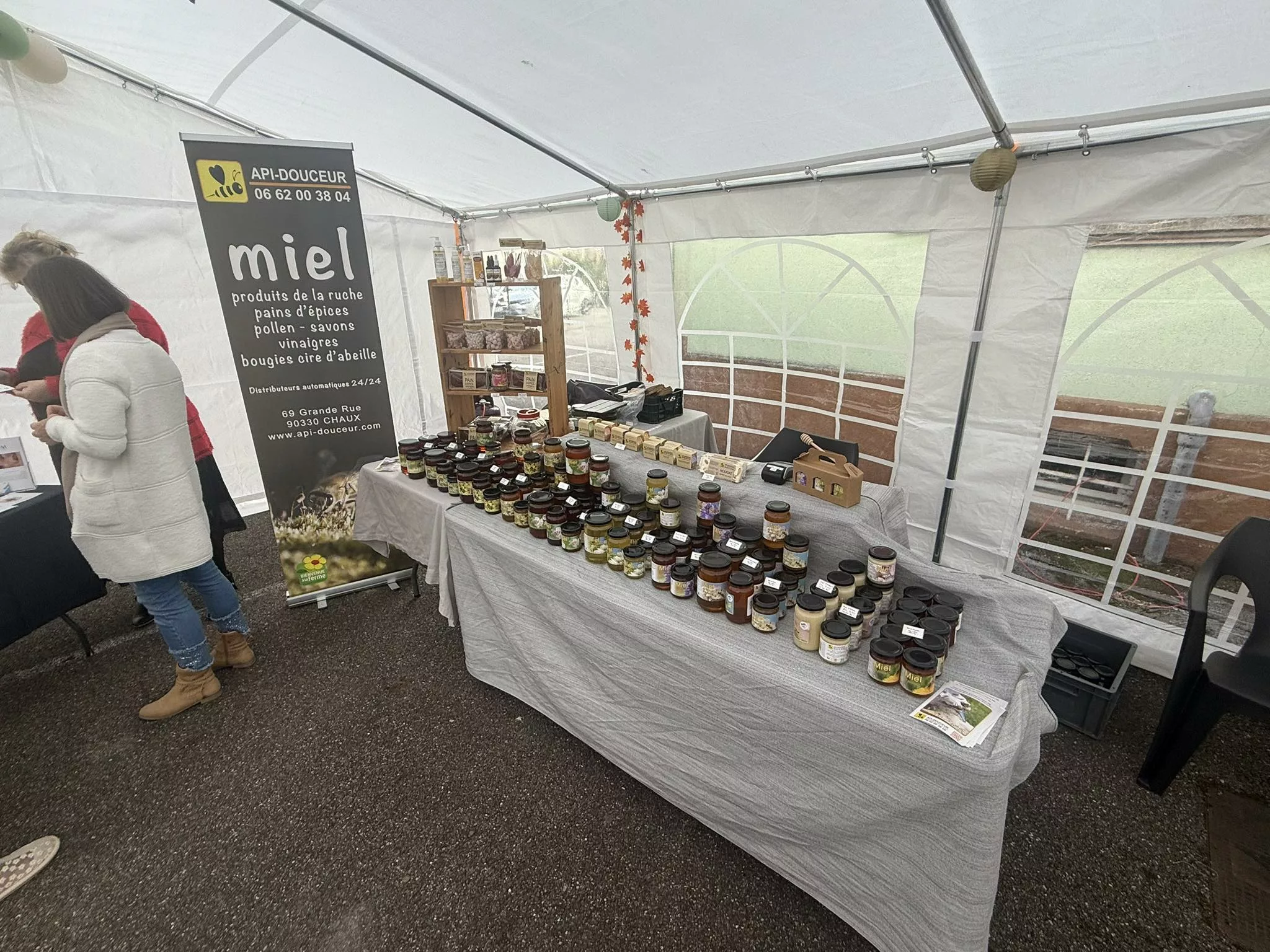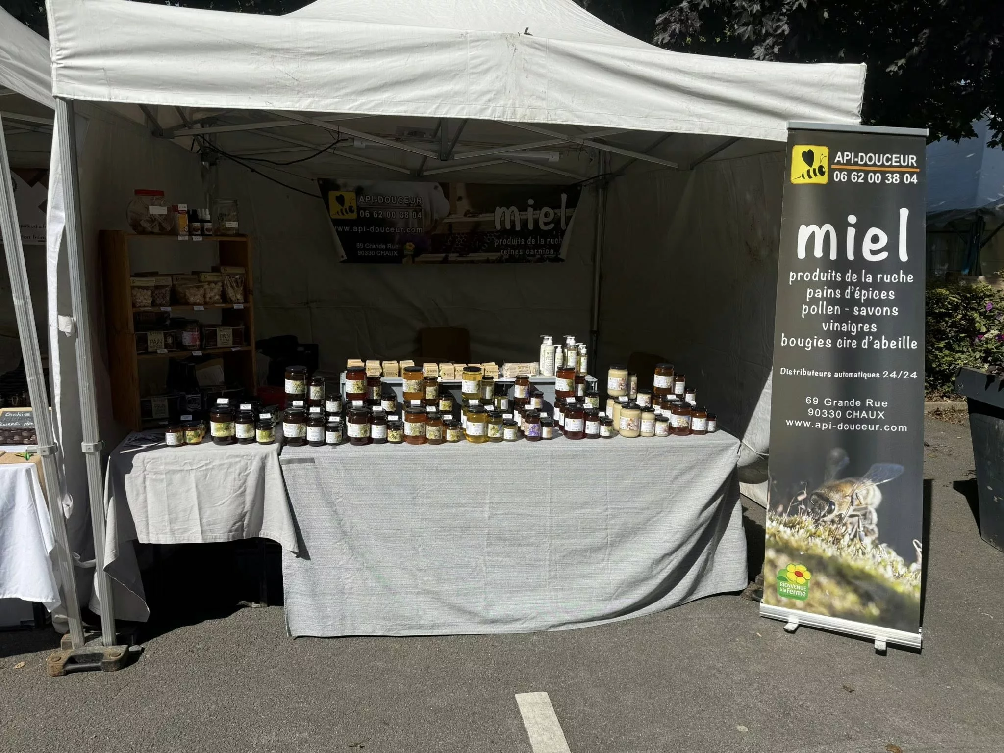 Api-Douceur est l'exploitation apicole de Flavien Durand et Patrick Girault, située à Chaux (90330) dans le Territoire de Belfort, en Franche-Comté. Les apiculteurs y pratiquent une apiculture raisonnée avec un grand respect pour la nature et les abeilles. Ils proposent une gamme complète des richesses de la ruche, incluant miels variés, pollen, gelée royale et propolis, souvent utilisées en apithérapie. L'entreprise est également spécialisée dans l'élevage et la vente de reines d'abeilles Carnica et d'essaims. Ils offrent un service de parrainage de ruche et un service SOS essaim.