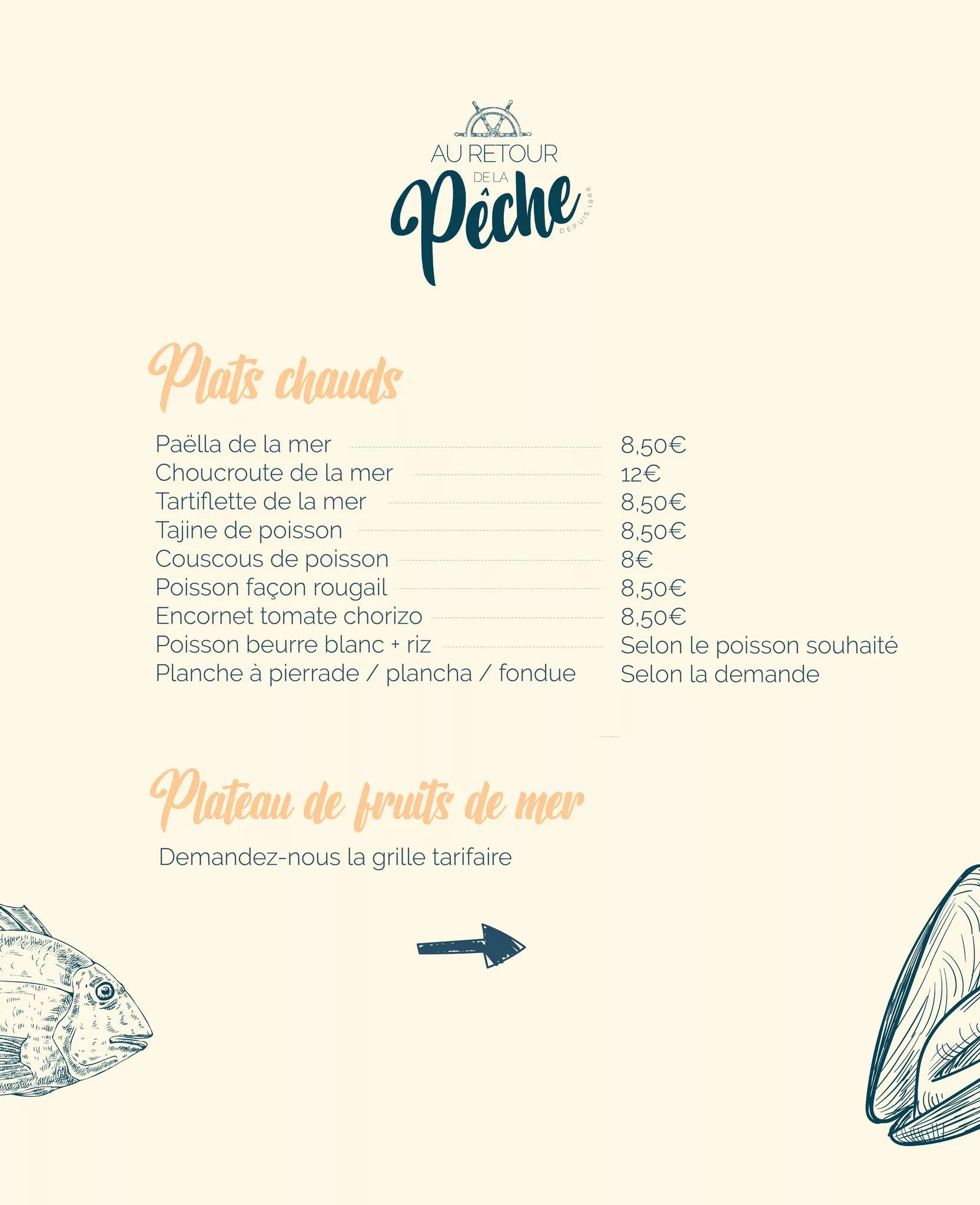 Fondée en 1988 par des fils de marins-pêcheurs des Sables-d'Olonne, la poissonnerie Au Retour de la Pêche est une institution vendéenne alliant tradition et dynamisme. Après s'être longtemps consacrée exclusivement aux marchés de Vendée et de Loire-Atlantique, l'entreprise a franchi une nouvelle étape en 2023 avec l'ouverture d'un magasin moderne dans la zone artisanale de Treize-Septiers. Reprise en avril 2025 par Guillaume et Benjamin, la maison perpétue un savoir-faire artisanal rare, notamment grâce à son propre laboratoire de fabrication. L'engagement pour la qualité se traduit par un approvisionnement rigoureux et une transformation maison de produits emblématiques. Entre expertise maritime et service de proximité, Au Retour de la Pêche demeure une escale privilégiée pour les gourmets en quête de produits marins d'une fraîcheur irréprochable et de préparations authentiques.
