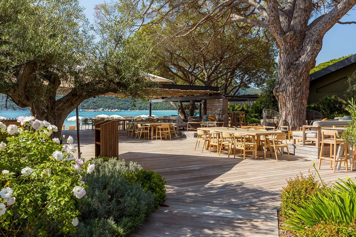 Bar Plage est un restaurant-plage emblématique situé au cœur de la baie de Santa Giulia, à Porto-Vecchio. Ce lieu chargé d’histoire est l’un des plus anciens de Corse, vestige du célèbre Club Polynésie des années 1950, réinventé récemment dans une version plus moderne. En été, il dispose d’une plage privée avec transats, ambiance décontractée sous les pins et genévriers. On y vient pour un déjeuner face à la mer, un dîner au coucher du soleil, ou juste pour siroter un cocktail dans un cadre paradisiaque. Le service est chaleureux, la décoration soignée, l’atmosphère intime, élégante mais relax, parfaite pour profiter du soleil et de la mer le temps d’un moment suspendu.