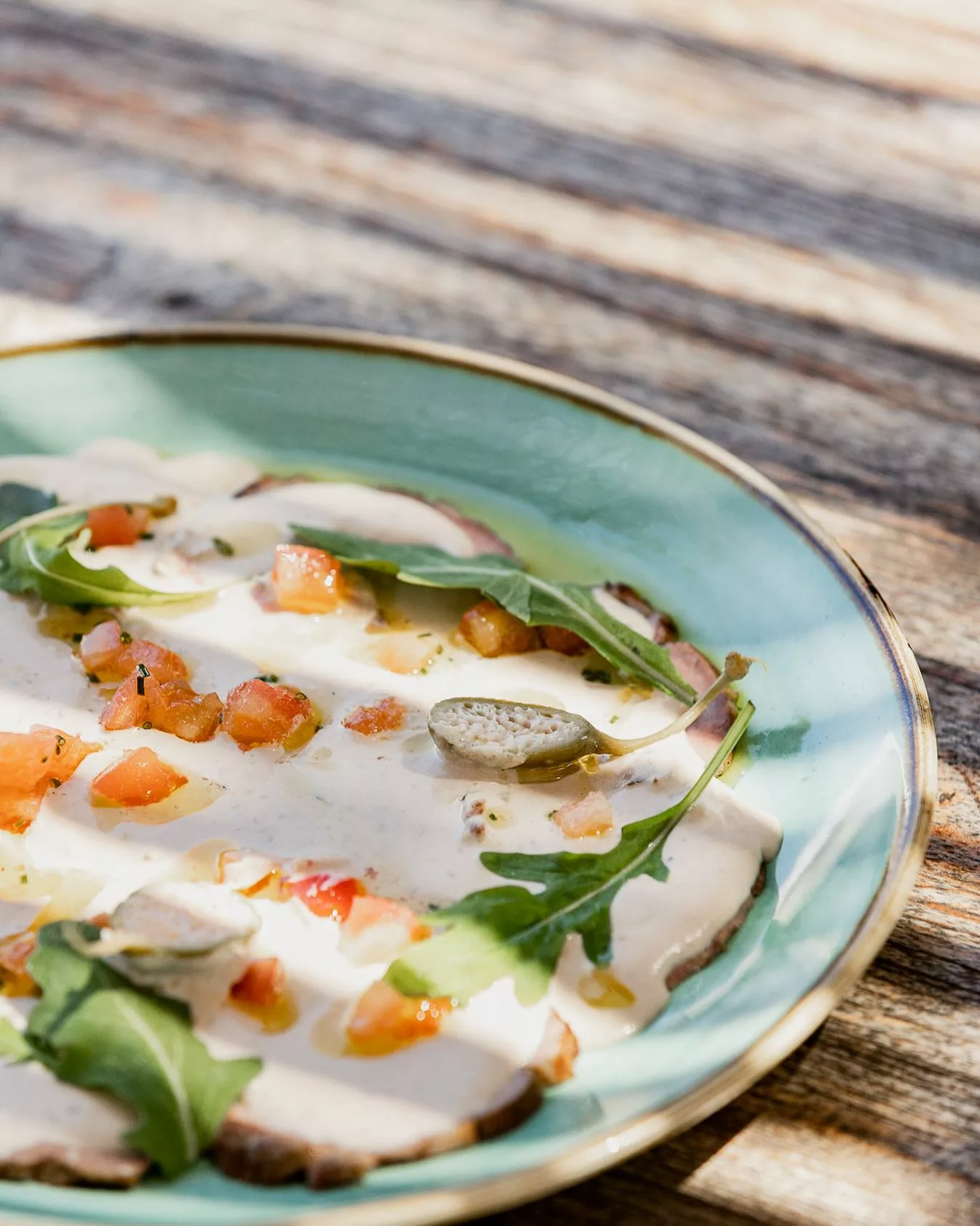 La spécialité du lieu : La carte propose une cuisine méditerranéenne épurée qui met en valeur les produits frais de la mer et de la terre : gambas croustillantes, poissons pêchés localement, carpaccio de loup, tagliolini aux gambas, vitello tonnato, ainsi qu’un burger maison et des viandes maturées. On trouve aussi des salades estivales et des desserts délicats — l’expérience culinaire est à la hauteur du cadre.