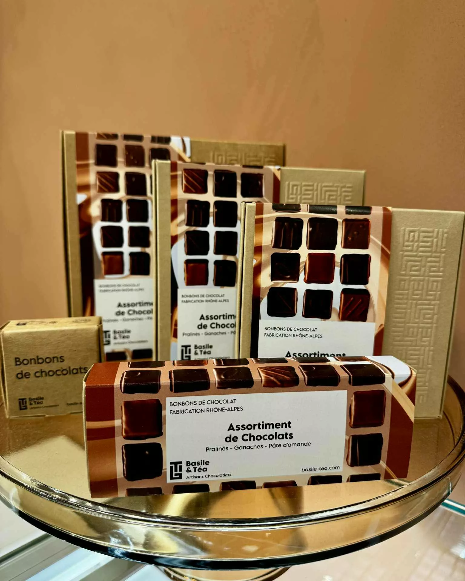 Installée à Lyon, la chocolaterie Basile & Téa se distingue par une approche moderne et responsable du chocolat. Leurs fondateurs travaillent avec un engagement de qualité unique, garanti par le label « Ingrédients Nobles ». Leur manifeste est clair : proposer un chocolat sain et authentique, sans lécithine de soja, sans huile de palme, sans conservateurs ni arômes ajoutés. Privilégiant le 100% pur beurre de cacao et des packagings écologiques en kraft recyclé (fabriqués localement), la marque s'adresse aux gourmets soucieux de leur bien-être et de l'environnement. De la tablette d'exception aux bonbons de chocolat raffinés, chaque produit Basile & Téa est une invitation à une dégustation intense, généreuse et sans compromis sur la naturalité.