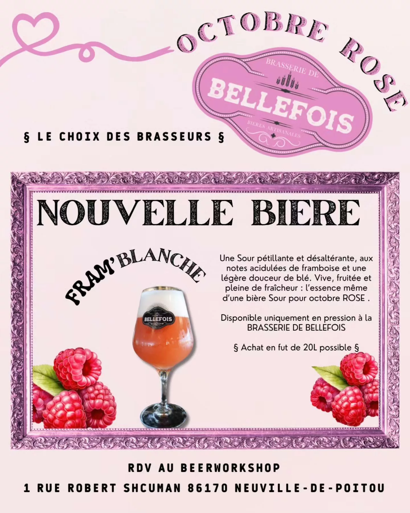 La Brasserie de Bellefois est une micro-brasserie artisanale établie à Neuville-de-Poitou (Vienne, 86) depuis 2003, initialement fondée par Pascal Pouilly. Elle a été reprise en 2020 par les maîtres brasseurs Jonathan Teillet et Olivier Vallée, qui perpétuent le savoir-faire de la fabrication sur levure.