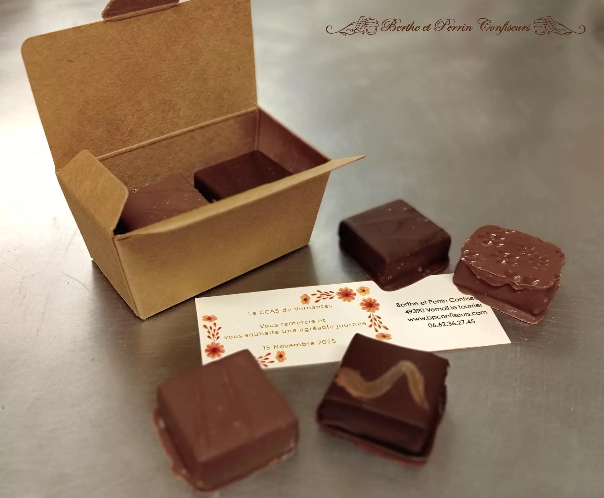 Installée à Saint-Mathurin-sur-Loire (commune de Loire-Authion), la confiserie Berthe et Perrin est née d'une volonté de renouer avec les souvenirs d'enfance à travers des produits artisanaux d'exception. L'atelier se distingue par un engagement fort : l'utilisation de fruits issus de productions locales ou de partenariats directs pour garantir une fraîcheur optimale et un circuit court. Chaque création, qu'il s'agisse de chocolats 100% pur beurre de cacao ou de confiseries traditionnelles, est élaborée avec une touche d'inspiration moderne tout en respectant les méthodes d'autrefois. C'est une maison qui prône le plaisir du partage et la transparence des ingrédients, offrant aux gourmands une escale sucrée authentique entre Angers et Saumur.