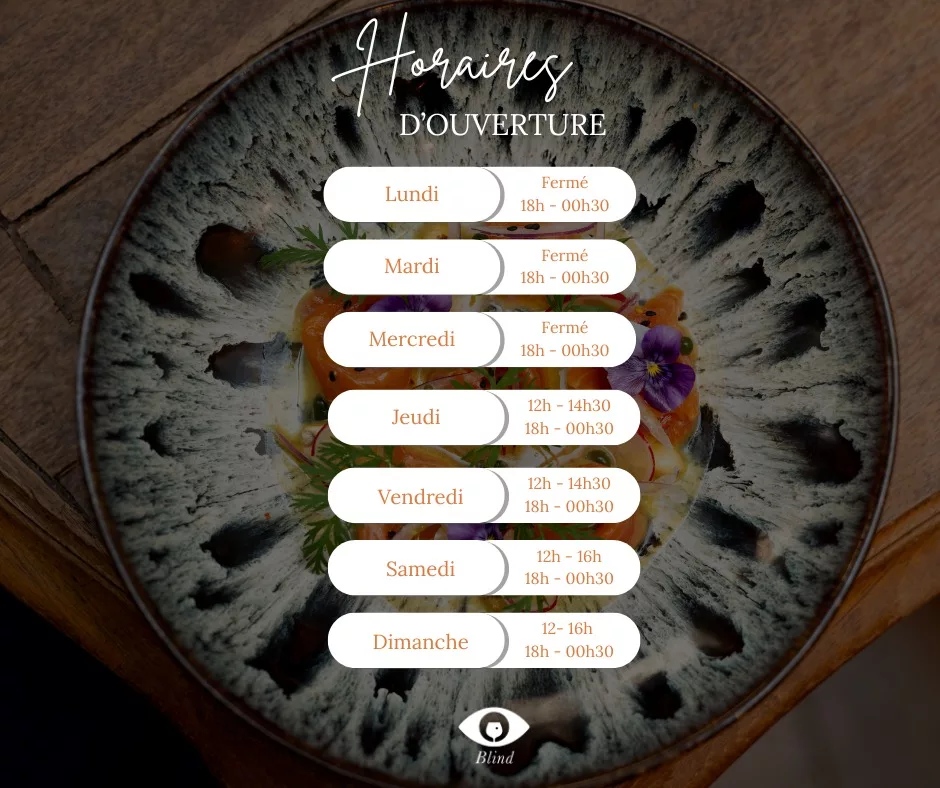 Le cadre, élégant et chaleureux, avec une décoration soignée, crée une atmosphère conviviale propice à la découverte et au partage. Ouvert du lundi au dimanche, Blind est l’endroit idéal pour une expérience culinaire inédite