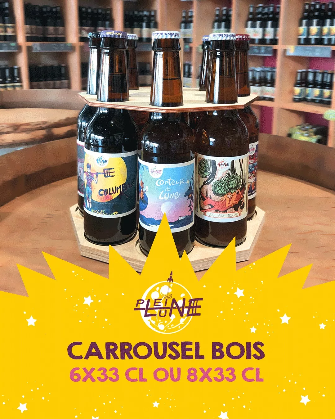 La spécialité du lieu : Gamme permanente : L'Universelle (Pale Ale), Lunik (Red Ale), Aubeloun (IPA), Pierre de Lune (Weissbier), Wicca (Triple). Gamme Houblonnée/Créative : Hina (NEIPA), Columbine (West Coast IPA), Lunette (Hoppy Wheat Beer), Sylvester Stalune (Double IPA), Lunaski (Imperial Stout), LSD4 (Sour IPA). Autres produits : Limonade artisanale (Limoonade et Limoonade Gingembre). Services : Bar/Boutique sur place, événements thématiques, et location de tireuses.
