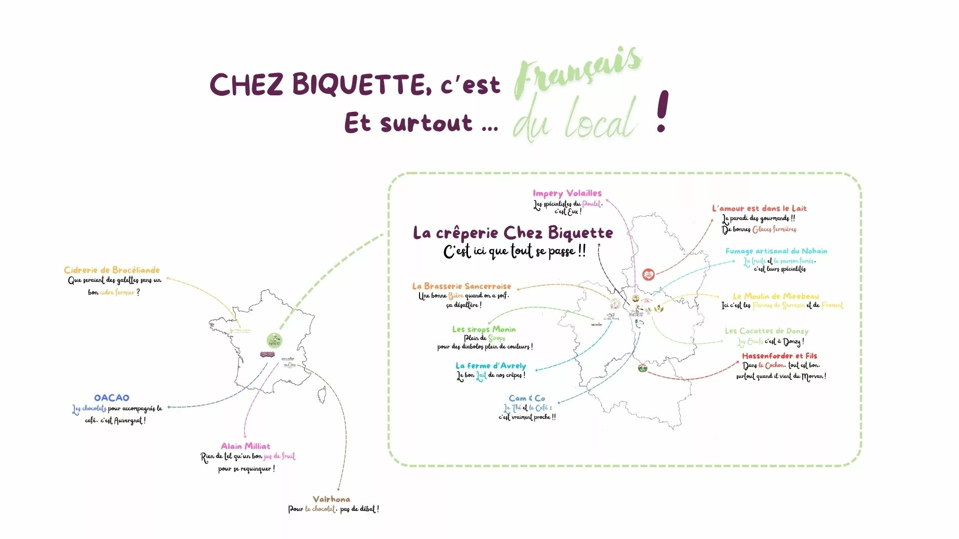 Situé sur les bords de Loire à Pouilly-sur-Loire, Chez Biquette est le projet de deux passionnés de cuisine, de pâtisserie et de cyclotourisme (avec le volet A Biq'Cyclette). Ce lieu convivial est une crêperie gourmande qui met fortement l'accent sur les produits locaux et ses producteurs partenaires. En plus de l'offre de restauration, Chez Biquette propose régulièrement des soirées animées par différents artistes, transformant la pause gourmande en un moment de détente et de convivialité sur les bords de Loire.