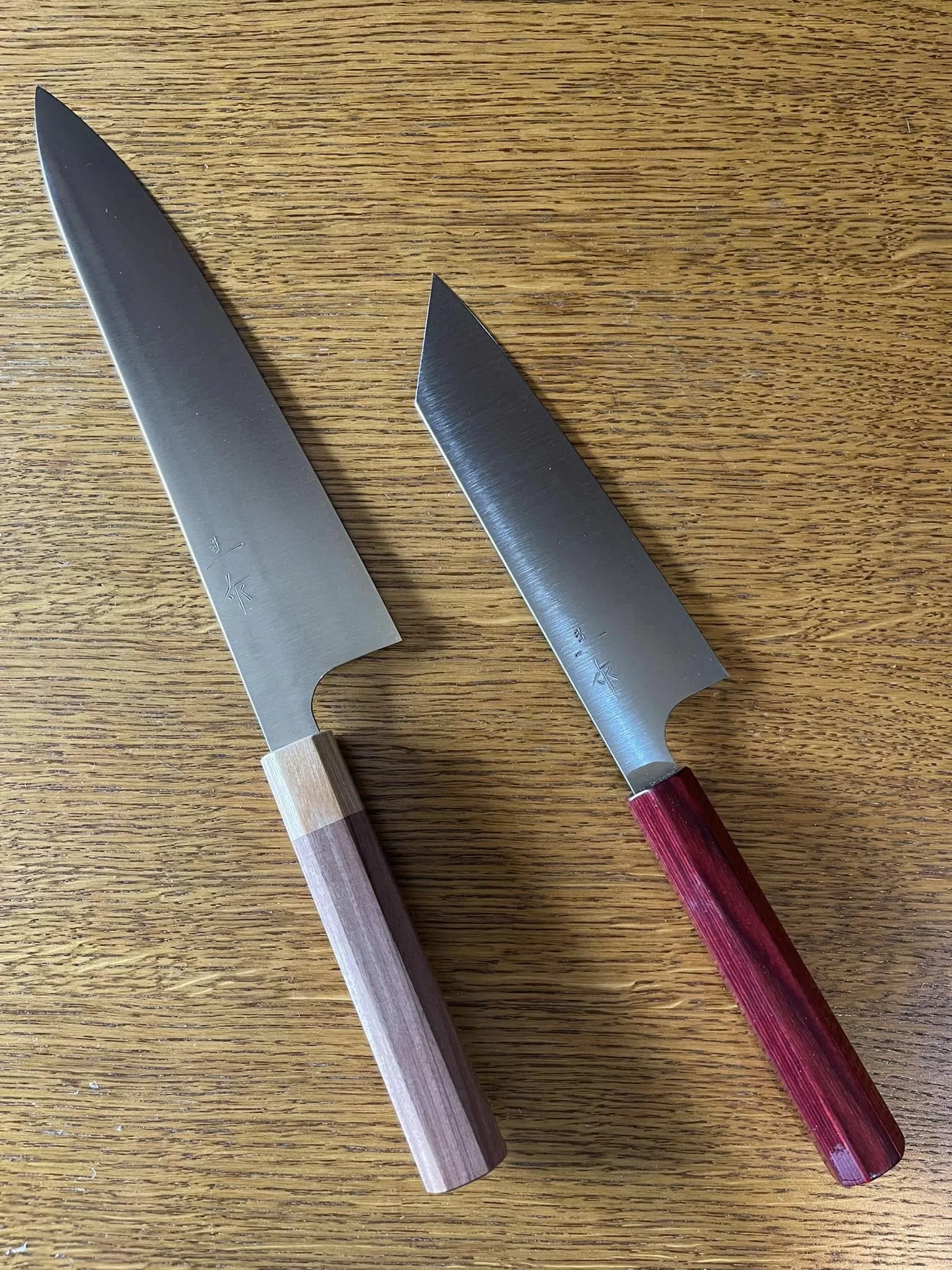 Bienvenue chez Couteau Nippon, l’atelier de Jean-Michel Riquet, artisan coutelier passionné situé à Oissel-sur-Seine (76). Expert dans l'art de la forge et du façonnage, Jean-Michel se distingue par ses créations d'inspiration japonaise, alliant la pureté des lignes orientales au savoir-faire artisanal normand. Dans son atelier de la rue des Feviers, il donne naissance à des couteaux de cuisine d'exception (Santoku, Gyuto) et des pièces de collection uniques, forgées à partir d'aciers multicouches ou carbone. Chaque lame est une quête de l'équilibre parfait entre esthétique et tranchant chirurgical. Un univers dédié aux gourmets et aux collectionneurs qui recherchent un outil d'une finesse rare, doté d'une âme et d'une histoire façonnée au marteau.