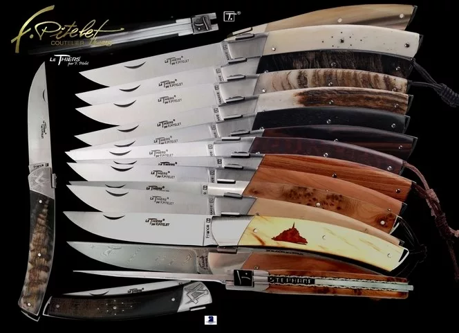 La spécialité du lieu : La spécialité de Franck Pitelet réside dans la création de couteaux pliants haut de gamme et la maîtrise du couteau « Le Thiers® ». L'artisan excelle dans le travail de matériaux rares comme les bois de cerf, les essences locales et exotiques. Son expertise se distingue par un ajustage parfait des mécanismes et une finition manuelle d'une grande finesse.