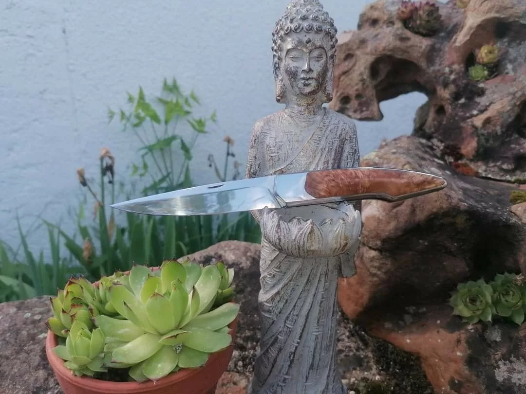 Bienvenue dans l'atelier de David Paynon, artisan coutelier passionné, situé au 13 rue de la Forêt de Lancy. Dans ce cadre sauvage et boisé, David façonne des couteaux qui sont le reflet d'une recherche constante d'authenticité et de performance. Ici, chaque pièce est unique, travaillée avec une attention particulière portée à l'âme du métal et à la noblesse des matériaux de manche. Que vous soyez un aventurier à la recherche d'une lame fixe robuste pour la forêt ou un amateur de beaux couteaux pliants, vous trouverez dans ses créations un équilibre parfait entre rusticité et finesse. Pousser la porte de cet atelier, c'est découvrir un savoir-faire où le geste de l'homme dialogue avec la matière pour créer des outils durables, ergonomiques et résolument vivants.