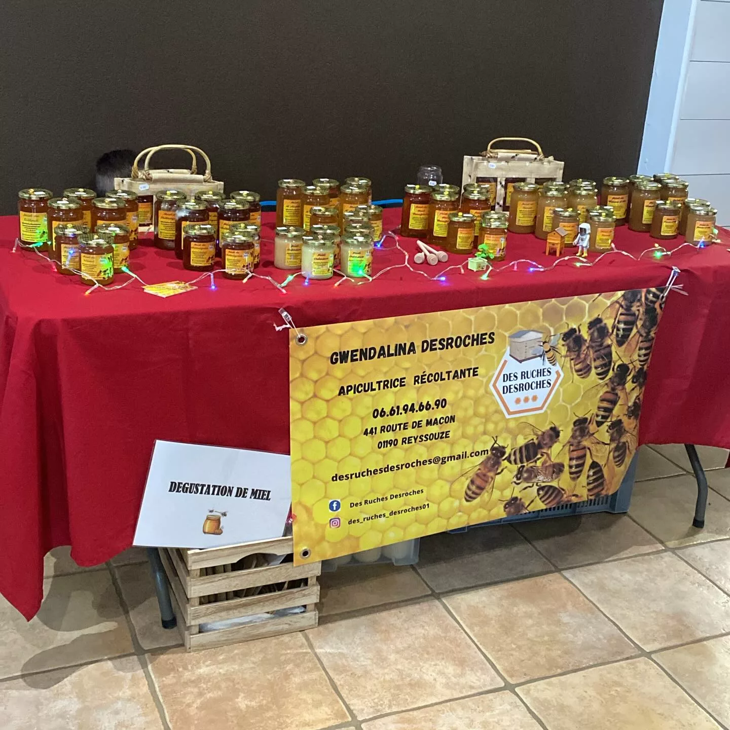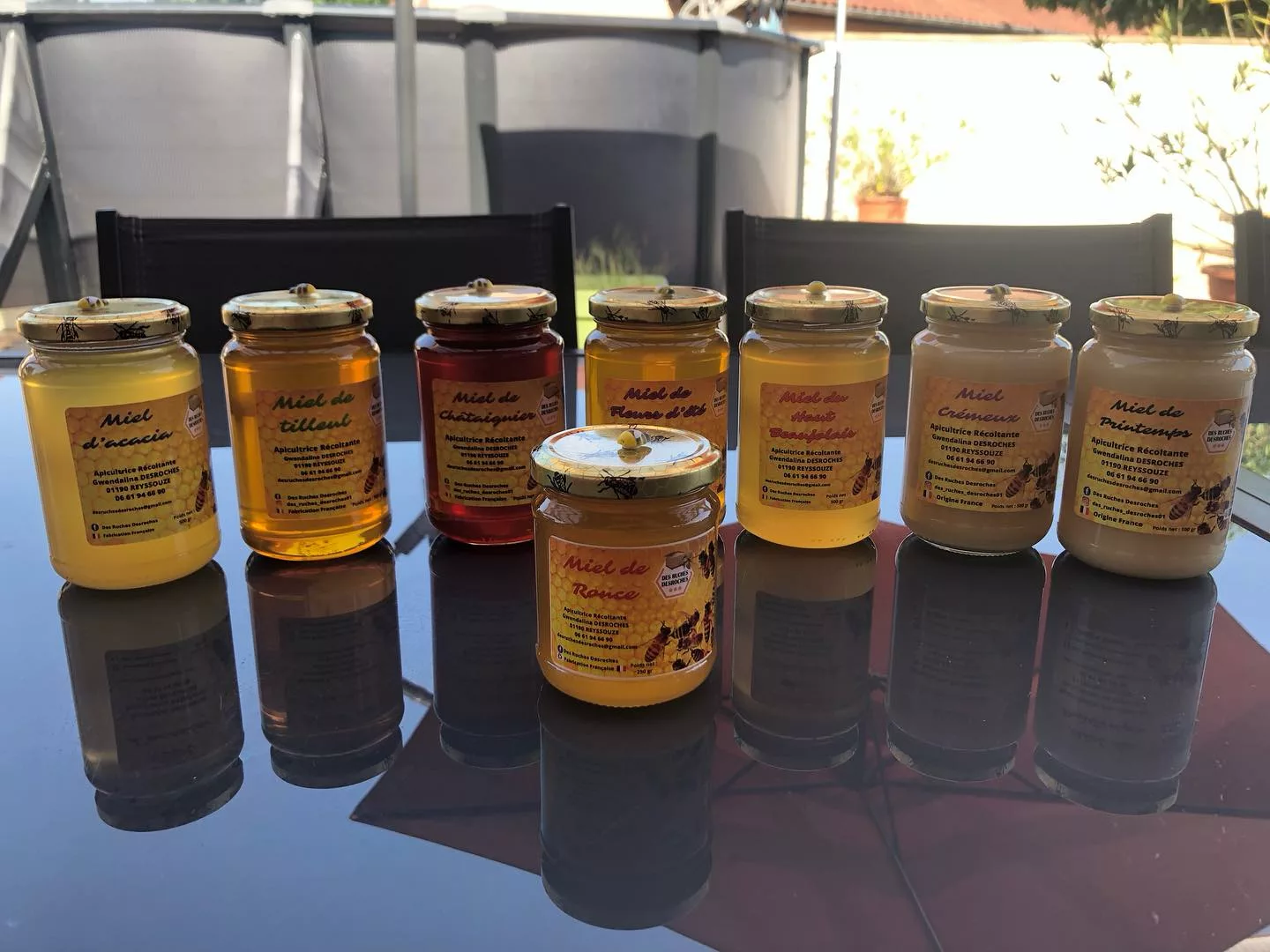 Des Ruches Desroches, gérée par l’apiculteur Anthony Desroches, est une exploitation apicole située à Reyssouze (01190), dans l'Ain, à la limite de la Saône-et-Loire. Installé dans le secteur du Val de Saône, ce producteur récoltant met en avant une apiculture de proximité et de qualité. L'exploitation propose une gamme de miels variés, issus des floraisons locales du terroir bressan et des bords de Saône. Les produits sont commercialisés en vente directe, notamment via un point de vente à la ferme et sur les marchés locaux, garantissant ainsi une traçabilité totale et un lien direct avec le producteur.