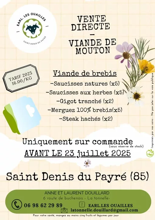À la bergerie de la Tonnelle à SAINT DENIS DU PAYRÉ, nous vous proposons de la viande de mouton, sous différentes formules.