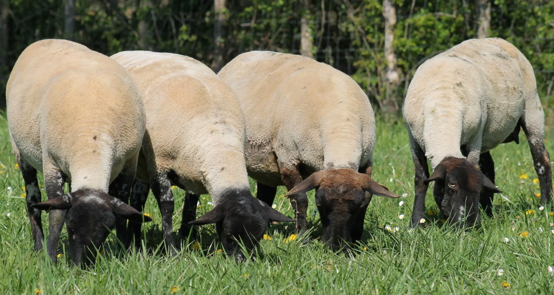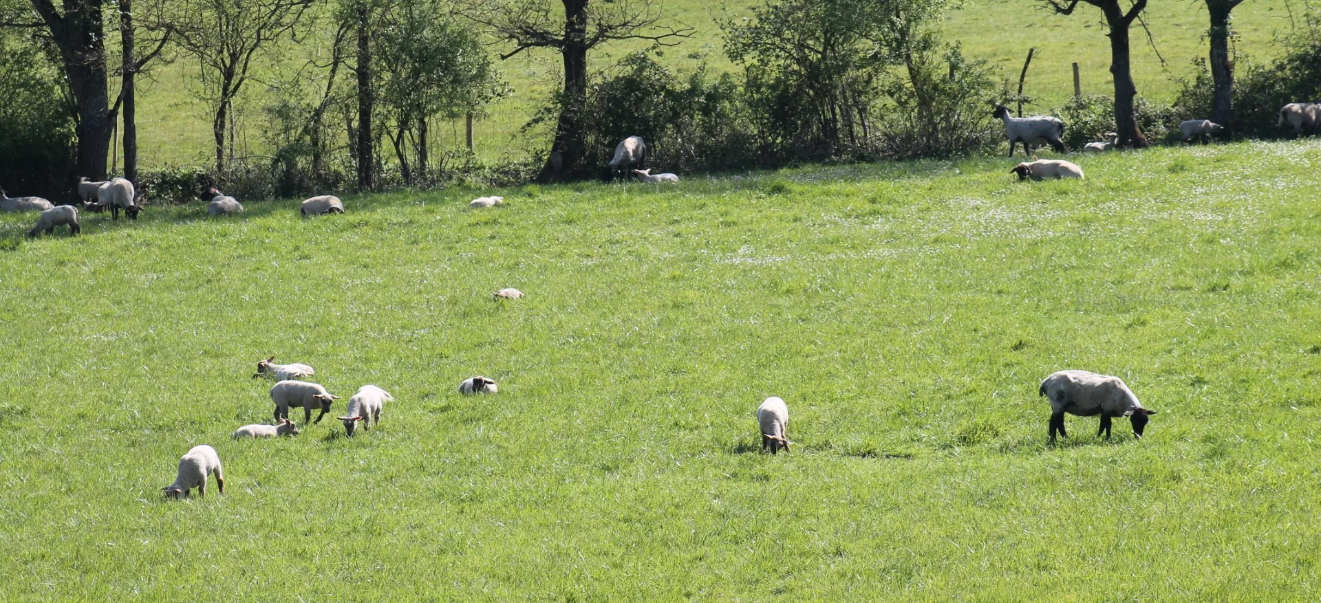 Les agneaux sont élevés sous la mère et nourrit eux aussi à l'herbe. Celon la saison les derniers seront complémentés d'un mélange fermier au Lin.