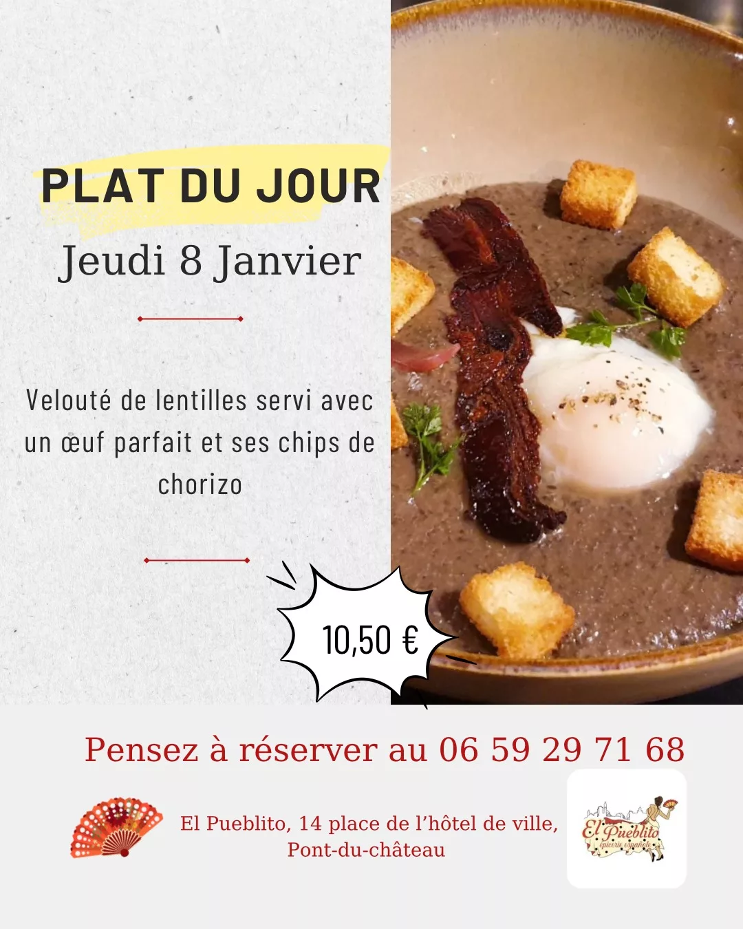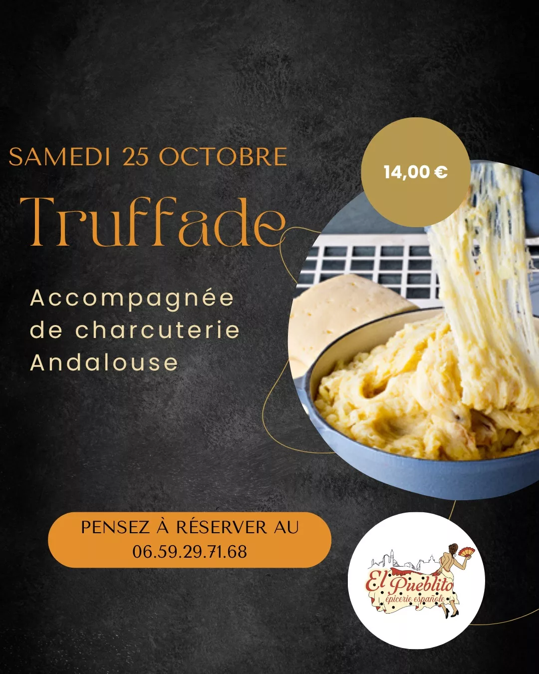 Bienvenue chez El Pueblito, votre escale espagnole au cœur de Pont-du-Château. Née de la passion de sa fondatrice pour ses racines andalouses, notre épicerie fine vous propose une immersion totale dans les saveurs ensoleillées de l'Espagne. Nous sélectionnons avec rigueur des produits d'exception auprès de producteurs renommés : charcuterie Ibérique Bellota, fromage Manchego, huiles d'olive fruitées, et tout le nécessaire pour des paellas authentiques. Que ce soit pour un déjeuner rapide avec nos sandwichs et salades fraîches, ou pour partager un moment convivial autour de nos plateaux de tapas, vins et sangria, El Pueblito est le lieu idéal. Ici, chaque produit raconte une histoire de tradition et de convivialité à savourer sur place ou à emporter.