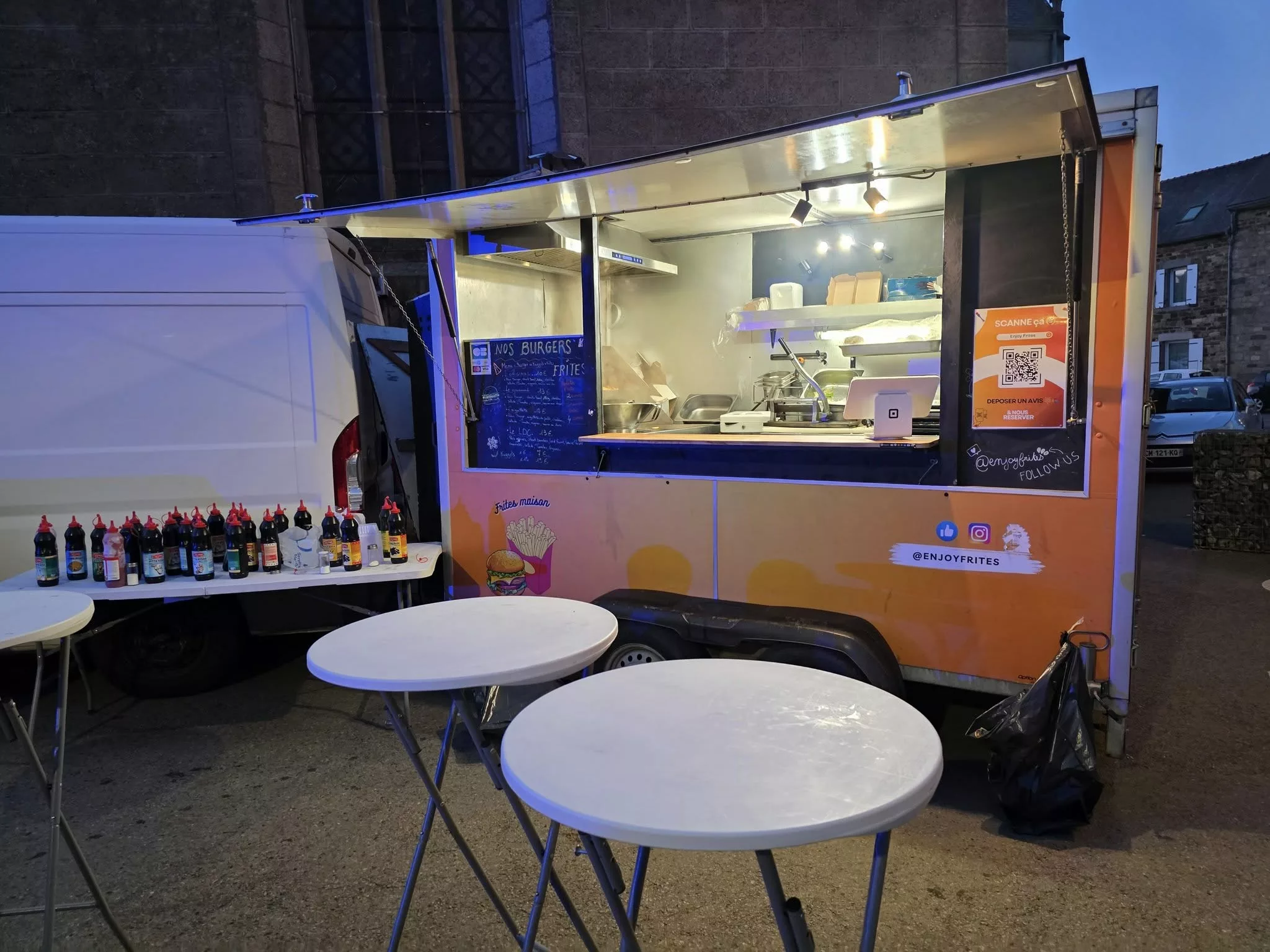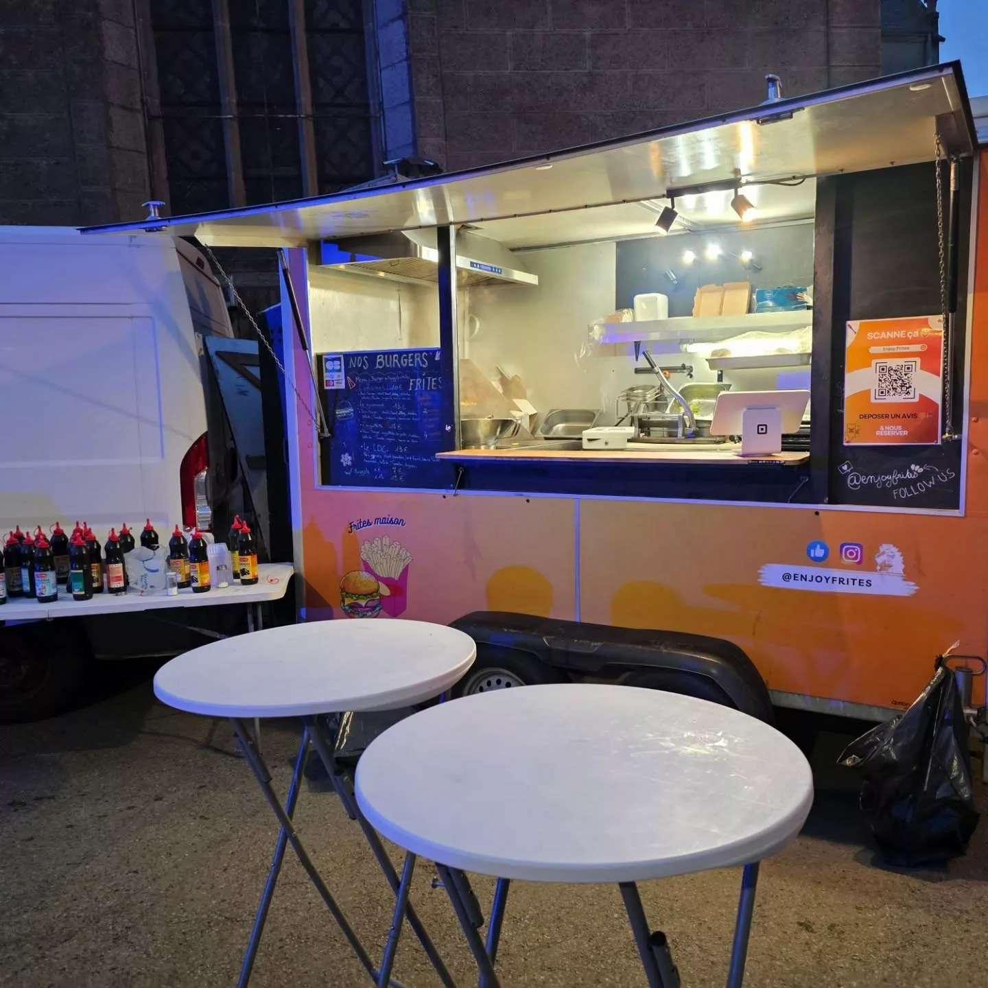 Enjoy Frites est un Food Truck spécialisé en street food (Burgers & Frites), qui opère principalement dans les Côtes-d'Armor (22). Basé sur l'idée d'une association locale, il sillonne les routes armoricaines autour de Saint-Brieuc (Plédran, Yffiniac, Lamballe, etc.) pour des emplacements réguliers et des événements publics (festivals, salons). Suite à un changement de propriétaire, le concept a évolué pour proposer des recettes à la viande tout en conservant des options végétariennes, visant à devenir la référence du Food Truck artisanal et gourmand en Bretagne. Le camion est également disponible à la privatisation dans toute la région.