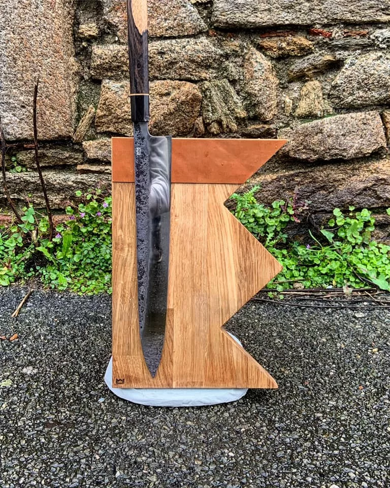 Découvrez l'univers d'Evan Antzenberger, artisan coutelier et forgeron installé à Nantes, dans le quartier de Chantenay. Formé dès l'âge de 16 ans par le maître Thierry Peyranne, Evan façonne des couteaux d'exception où l'art rencontre la matière. Spécialisé dans la réalisation de couteaux de cuisine haut de gamme et de pièces de collection, il se distingue par une recherche constante d'esthétiques "improbables" et de performances de coupe extrêmes. Chaque lame est forgée à la main, mariant des aciers techniques (souvent inspirés du savoir-faire japonais) à des manches aux matériaux soigneusement sélectionnés. Un travail d'orfèvre reconnu par les plus grandes tables, pour qui le couteau n'est plus seulement un outil, mais le prolongement de la main et de l'art culinaire.