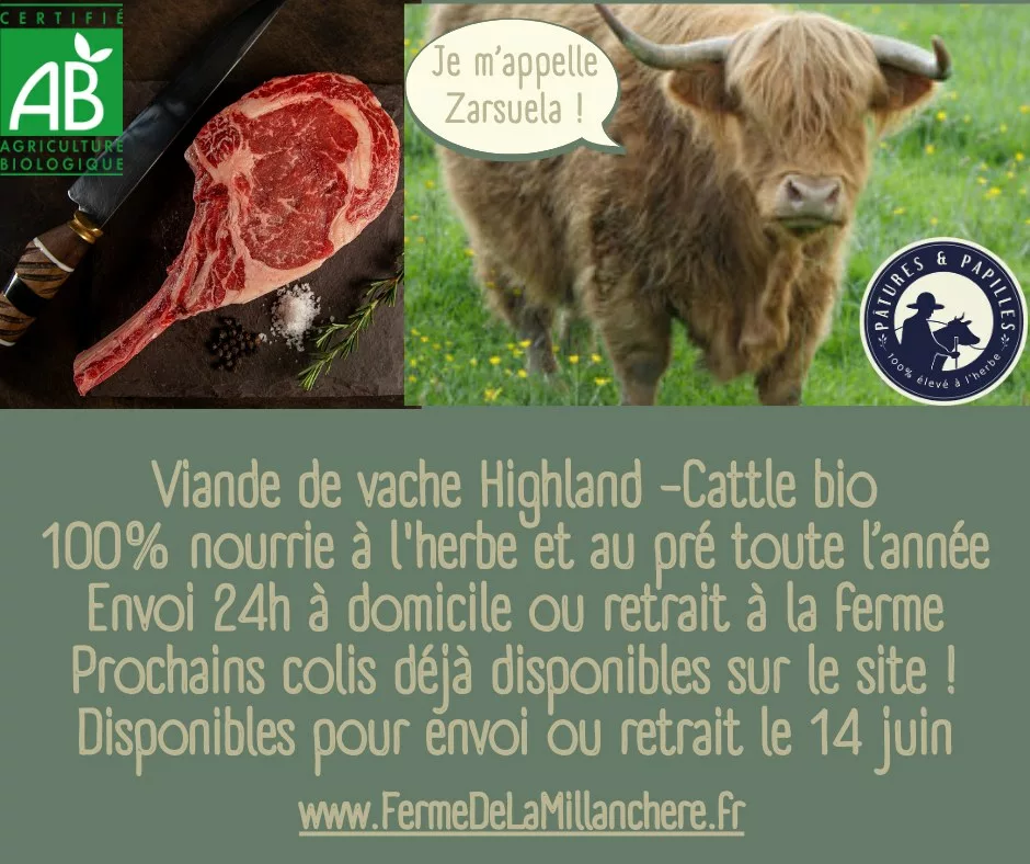 La Ferme de la Millanchère est une exploitation familiale conduite par Rémi, Grégoire et Florence, deux frères et une sœur unis par un engagement profond pour l'écologie et la biodiversité. Certifiée Bio par Ecocert depuis 2016, la ferme se distingue par l'élevage de races rustiques d'exception : la Highland Cattle (vache écossaise aux longues cornes) et la Black Angus. Ici, les animaux vivent en totale liberté sur 80 hectares de prairies et sont nourris exclusivement à l'herbe et au foin de l'exploitation, garantissant une viande saine et riche en oméga-3. Membre du label « Pâtures et Papilles », la ferme prône un élevage à taille humaine qui respecte le cycle naturel et favorise la sauvegarde de l'environnement gâtinais. C'est un lieu où l'amour de la terre et du bien-être animal se goûte dans chaque produit.