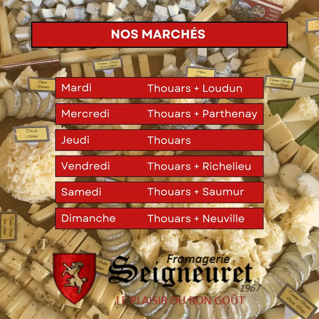 La Fromagerie Seigneuret est une entreprise familiale dont les racines remontent à 1967. Aujourd'hui dirigée par Monsieur Debare, elle collabore étroitement avec l'EARL du Chemin Fleury, une exploitation caprine de 1400 chèvres située sur la même ferme. Cette synergie unique permet à la fromagerie de maîtriser l'intégralité du cycle de production, de la traite à l'affinage. Alliant tradition et modernité, l'établissement est labellisé "Prosper Montagné - Maison de Qualité", un gage d'excellence gastronomique. Avec une gamme de plus de 180 produits, la fromagerie fournit aussi bien les particuliers que les professionnels de la restauration (comme lors des Grandes Tablées de Saumur), tout en restant un acteur central des marchés locaux du Poitou et de l'Anjou.