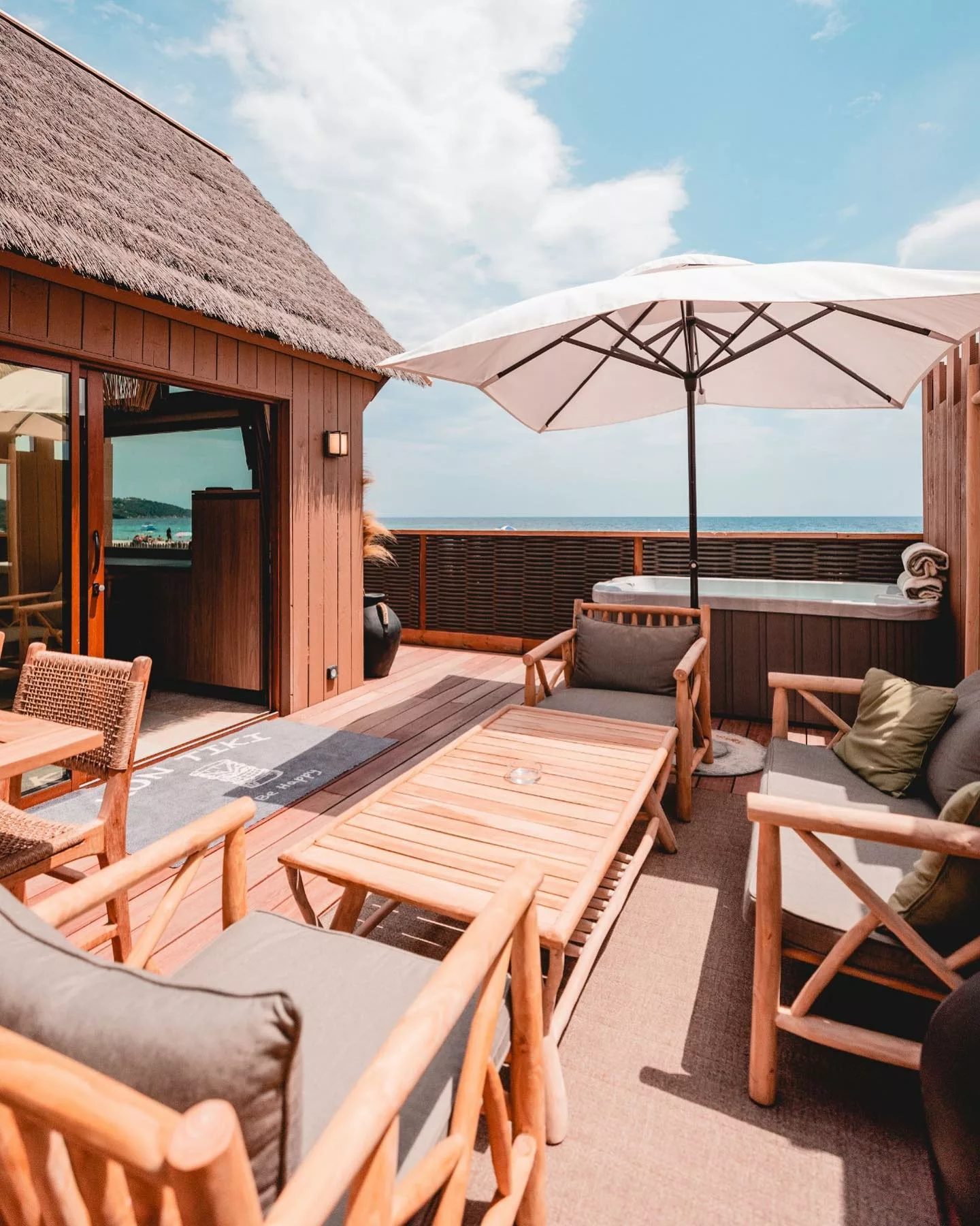 Le Tiki Beach est un restaurant de plage situé à Ramatuelle, sur la célèbre plage de Pampelonne. On y accède depuis le Chemin de la Matarane, avec un parking à proximité. Il offre une ambiance chaleureuse et détendue, les pieds dans le sable, avec une vue impressionnante sur la Méditerranée. Le lieu est parfait pour déjeuner au bord de l’eau, profiter d’un apéritif au coucher du soleil ou dîner sous les étoiles. La décoration est chic et bohème, avec des transats confortables. Le service proposé est attentif, multilingue (français, anglais, italien). L’établissement est ouvert tous les jours de la saison, avec des horaires étendus en été.