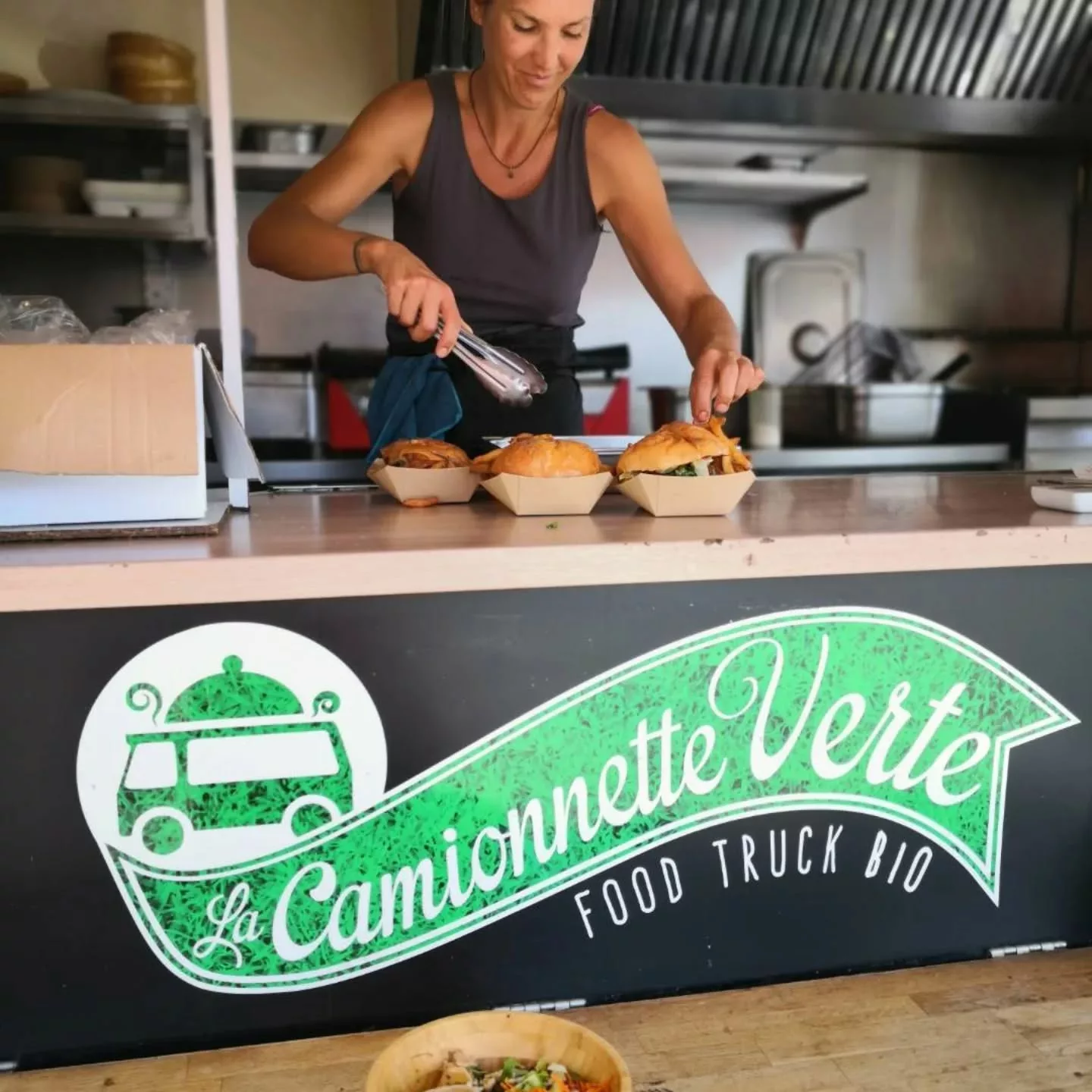 La Camionnette Verte, dirigée par Eloise Thomas, est un Food Truck basé à Cabestany (Pyrénées-Orientales - 66) proposant une cuisine gourmande, saine, colorée et de saison. L'entreprise met un point d'honneur à travailler des produits frais, bio et locaux dans un souci éthique. La carte propose une cuisine du monde variée, incluant des burgers maison, ainsi que des options adaptées aux régimes spécifiques : burger veggie (végétarien) et pain sans gluten. La Camionnette Verte assure également des prestations de traiteur événementiel pour tout événement public ou privé (mariage, anniversaire, repas d'entreprise) avec des devis sur mesure, et propose la vente sur place (terrasse) ou à emporter avec des emballages recyclables.