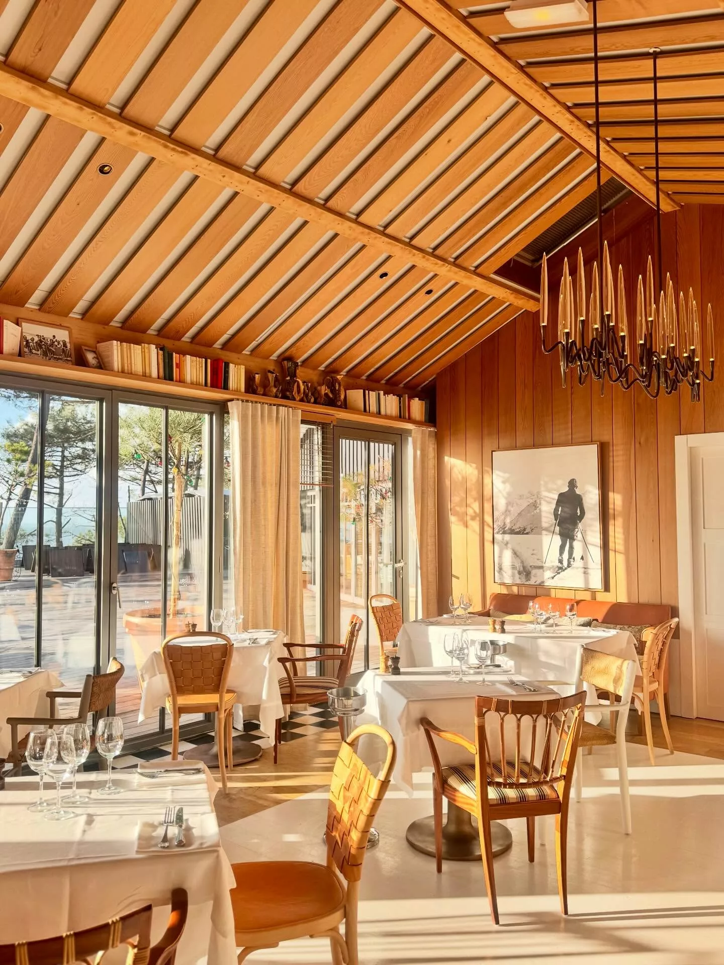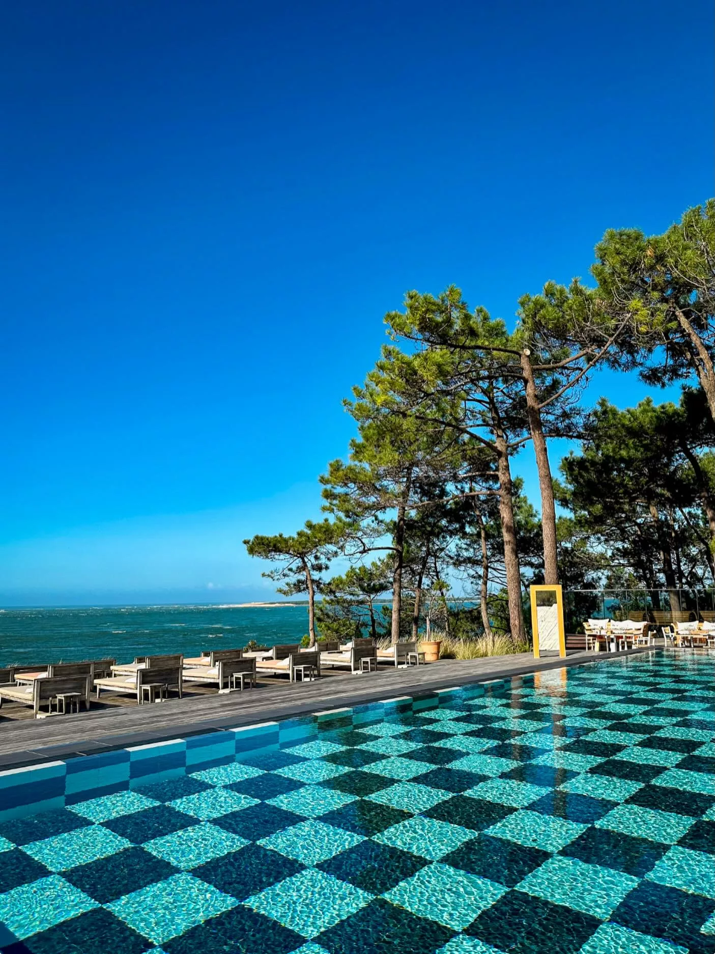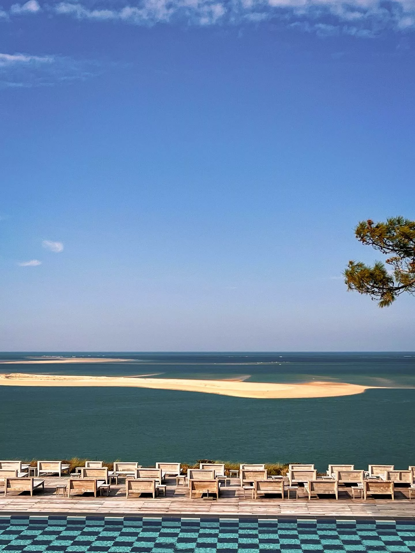 Perché sur la dune du Pyla à Pyla-sur-Mer, l'hôtel-restaurant 5 étoiles La Co(o)rniche est un lieu mythique redessiné par Philippe Starck. Occupant une ancienne bâtisse néo-basque des années 1930, l'établissement offre l'un des panoramas les plus spectaculaires au monde : une vue plongeante sur le banc d'Arguin, l'entrée du Bassin d'Arcachon et la pointe du Cap Ferret. Entre luxe discret et nature sauvage, cet hôtel "vigie" propose des chambres dans la maison principale ou dans des cabanes de style ostréicole nichées sous les pins, créant une atmosphère à la fois poétique et surréelle.