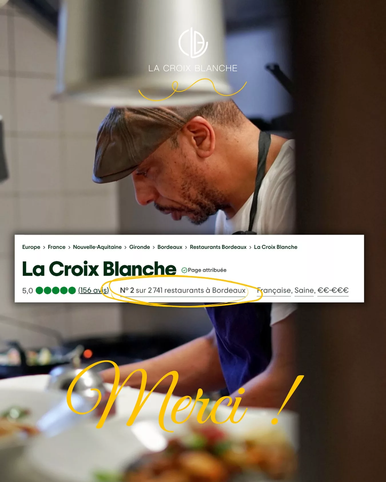 Située au 62 rue de la Croix Blanche, dans le quartier Saint-Seurin à Bordeaux, La Croix Blanche offre une immersion dans une ambiance bistrot chic raffinée, chaleureuse et pleine de caractère. On y retrouve une salle élégante ou l’on se sent immédiatement bien, ainsi qu’une terrasse ombragée, un jardin et des espaces extérieurs apaisants parfaits pour les beaux jours. L’accueil y est soigné, attentif, porté par une équipe passionnée autour du Chef Momo, qui avec plus de 30 ans d’expérience apporte à ses plats une touche d’authenticité et d’originalité, mêlant tradition bordelaise et influences plus larges.