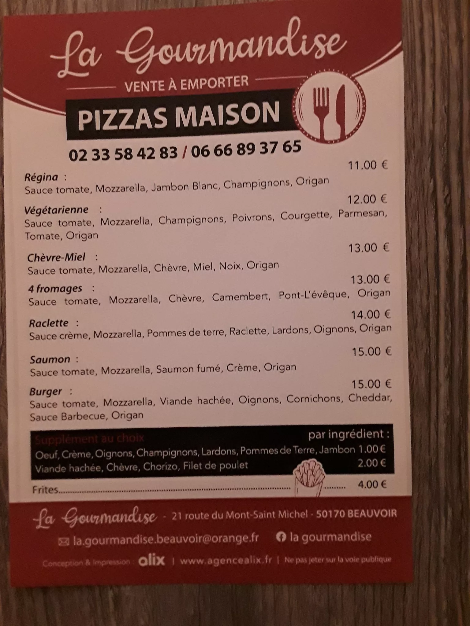 La Gourmandise est un établissement polyvalent (Crêperie, Restaurant, Pizzeria, Hôtel, Grill) situé à Beauvoir, à seulement 1 km des parkings du Mont Saint-Michel, et accessible via la voie verte longeant le Couesnon. L'établissement propose une cuisine variée dans une ambiance conviviale, romantique et familiale, avec 50 places à l'intérieur et une grande terrasse de 60 places l'été.