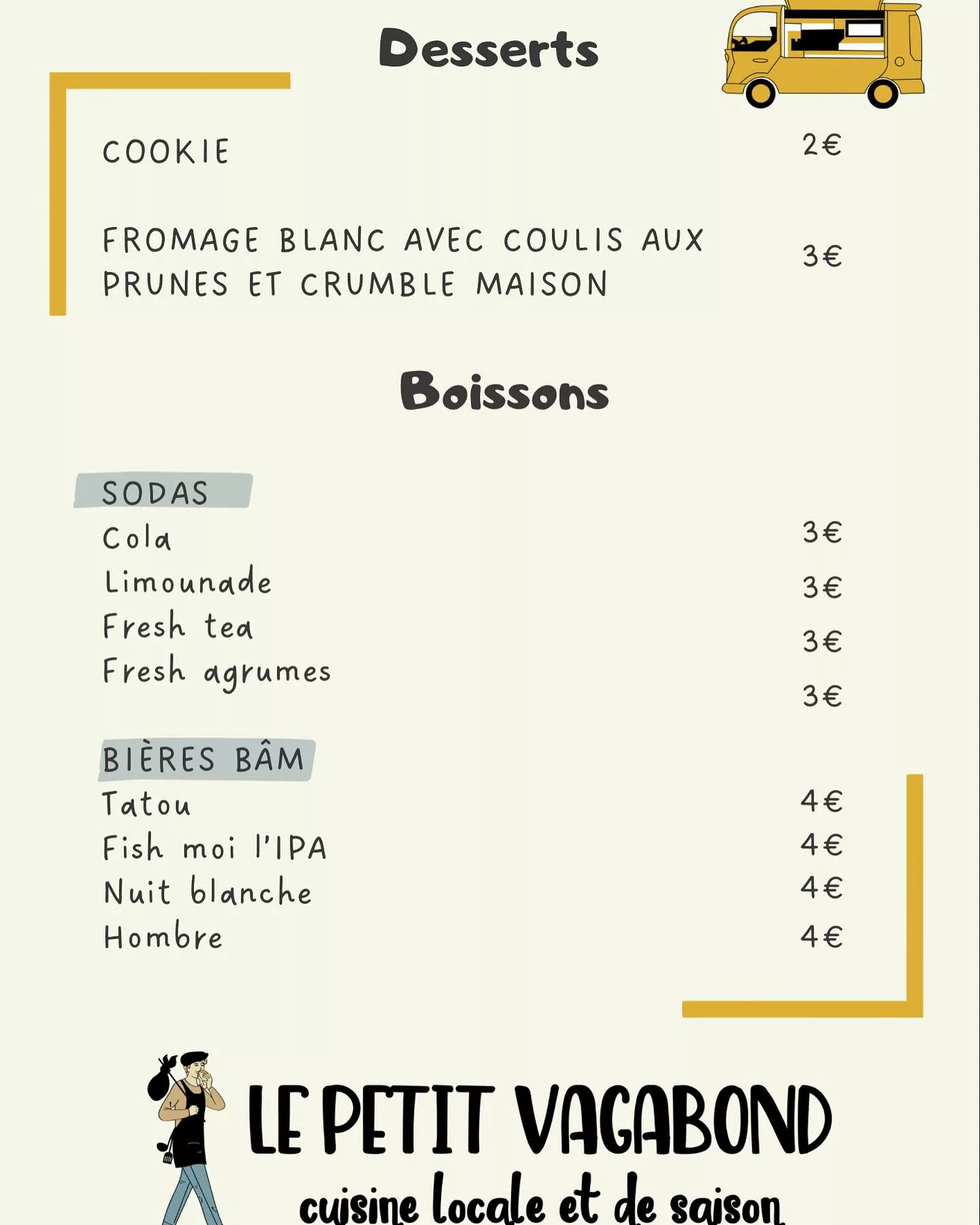 Le Petit Vagabond est un Food Truck (restauration mobile) et traiteur basé en Haute-Vienne, près de Limoges. Le concept est centré sur la proximité avec les clients et la souplesse pour les événements privés (mariages, anniversaires) et d'entreprise. Ils proposent un service de restauration ambulante et mettent l'accent sur la personnalisation, s'adaptant aux besoins spécifiques en termes d'emplacements, de privatisation et de menus. Pour connaître leurs emplacements réguliers et la nature exacte de leur offre, il est recommandé de les contacter ou de consulter leur page "Menu".