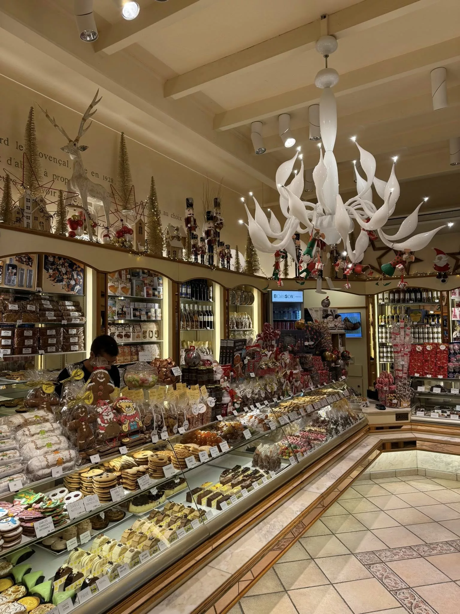 La spécialité du lieu : Confiseries de Provence : Calissons, nougats blancs et noirs, fruits confits et pâtes de fruits artisanales. Chocolaterie : Assortiments de bonbons au chocolat, mendiants et fruits enrobés. Pâtisseries & Viennoiseries : Gâteaux pâtissiers, tartes, macarons et brioches fraîches chaque matin. Épicerie Fine : Miels de Provence, pains d'épices et huiles d'olive Nicolas Alziari.