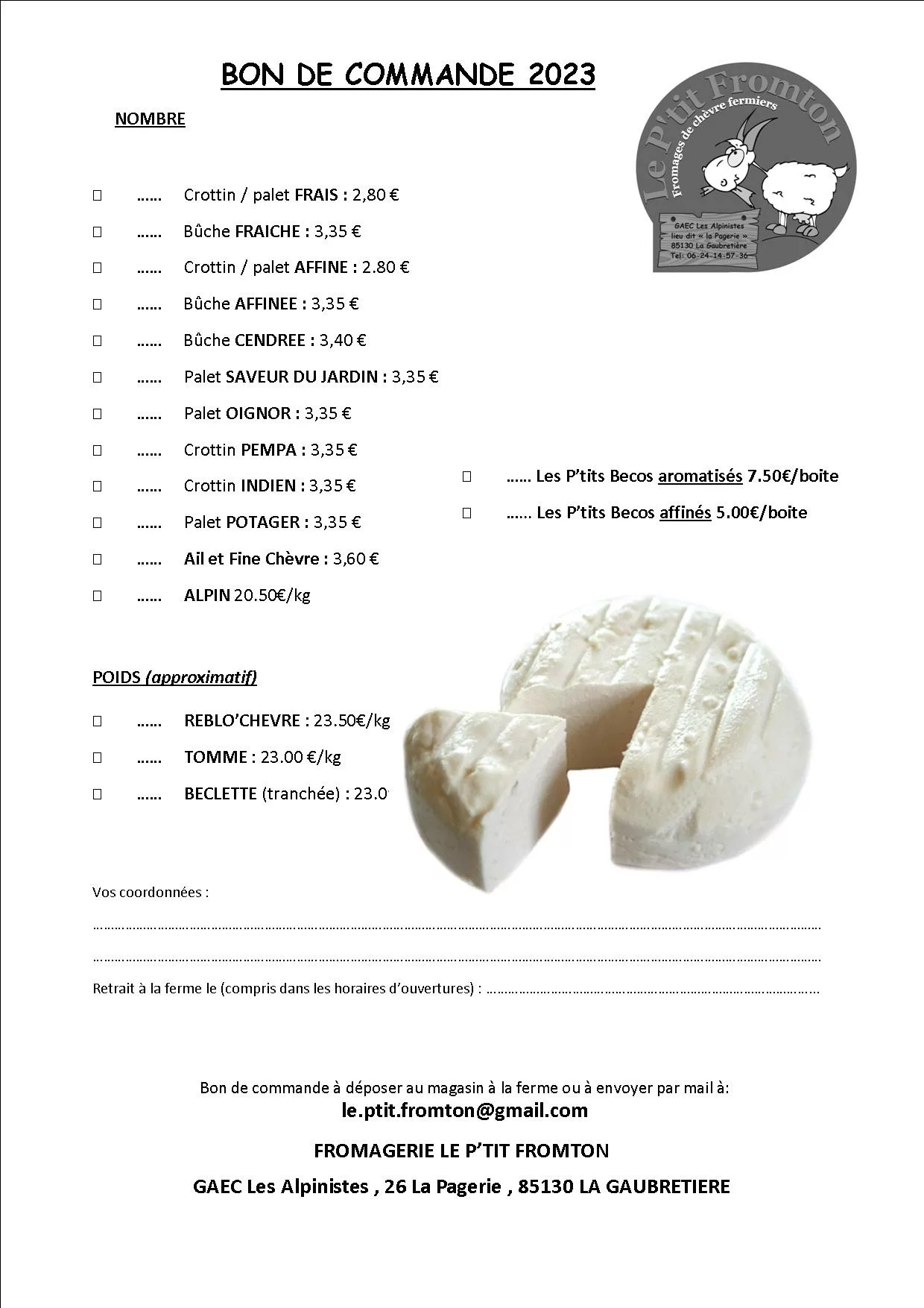 Bienvenue chez Le P'tit Fromton, votre destination gourmande située à Roullet-Saint-Estèphe. Passionnés par la richesse de nos terroirs, nous sélectionnons pour vous le meilleur des fromages fermiers et artisanaux, avec une prédilection pour le lait cru et les savoir-faire authentiques. Notre boutique propose une large gamme de pépites laitières, des grands classiques AOP aux découvertes locales les plus confidentielles. Mais Le P'tit Fromton, c'est aussi un sens aigu du partage : nous confectionnons des plateaux sur mesure (fromages et charcuteries) pour sublimer vos apéritifs et événements. Complétée par un rayon crémerie et une sélection d'épicerie fine, notre adresse est le lieu idéal pour tous ceux qui cultivent l'art du bien manger dans une ambiance chaleureuse et décontractée.