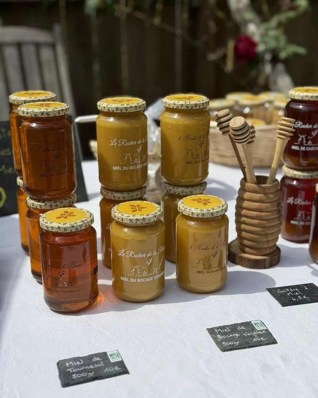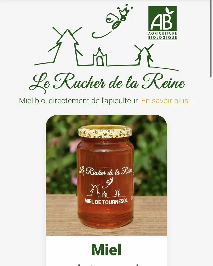Le Rucher de la Reine est une boutique d'apiculteur spécialisée dans la vente de miel biologique, garantissant un produit directement du producteur au consommateur. Située dans la région du Bocage Vendéen, l'entreprise propose une variété de miels monofloraux et crémeux, récoltés dans le respect des normes bio. Sa gamme inclut des saveurs classiques comme le miel de tournesol et de châtaignier, ainsi que des produits enrichis comme le miel à la propolis. L'accent est mis sur la qualité, la naturalité et l'origine locale de chaque pot.