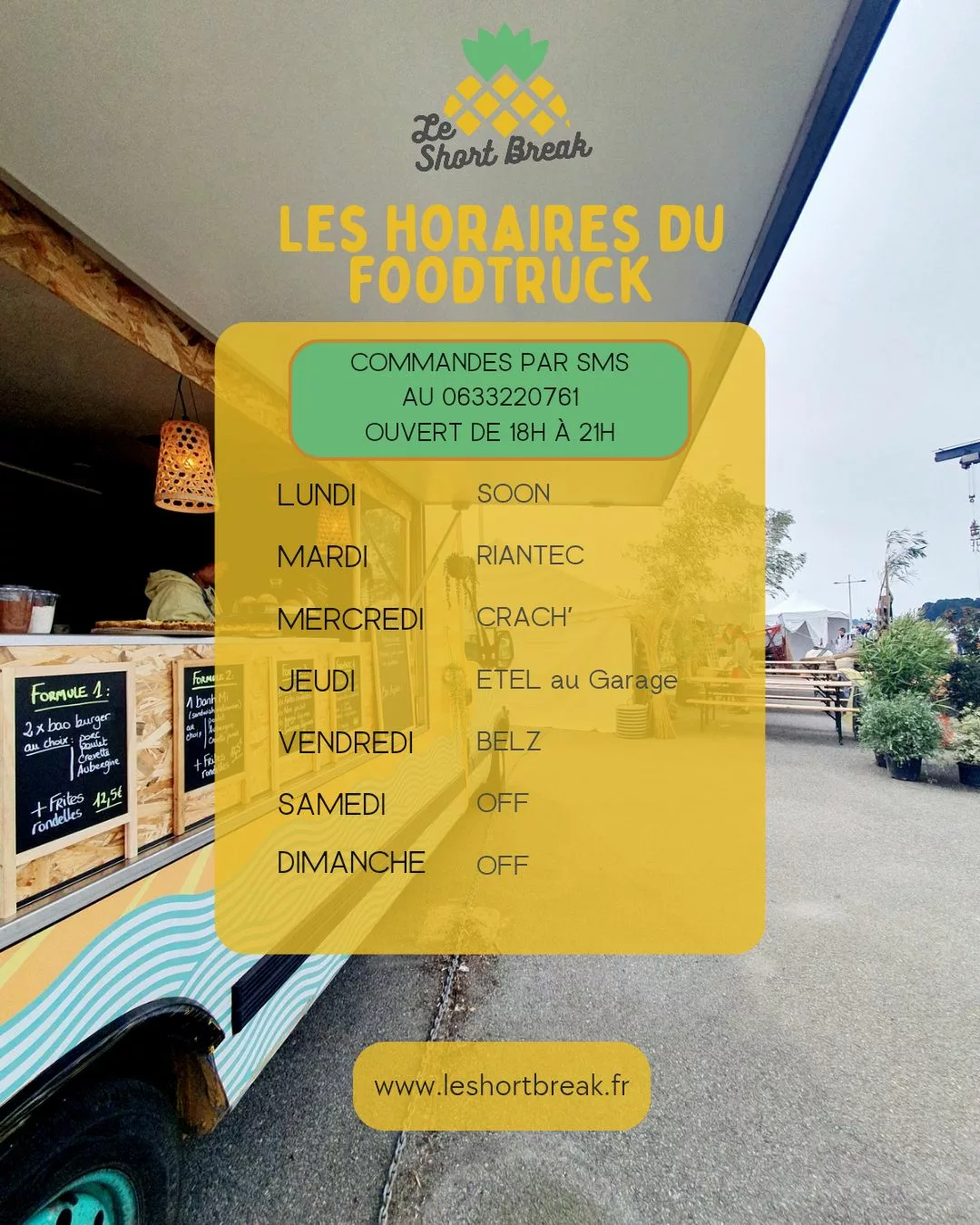 Le Short Break est un Food Truck et Traiteur basé à Étel (56), dans le Morbihan. L'entreprise, menée par Caroline, est spécialisée dans la cuisine du monde, avec une forte influence asiatique. Le concept "Fait Main, Fait Cœur" promeut l'inventivité et la gourmandise à travers une fusion de saveurs et l'utilisation de produits frais. En plus de son Food Truck itinérant, l'établissement propose des services traiteur (sur place, en livraison ou retrait au labo) pour tous types d'événements, ainsi que des cours de cuisine asiatique.