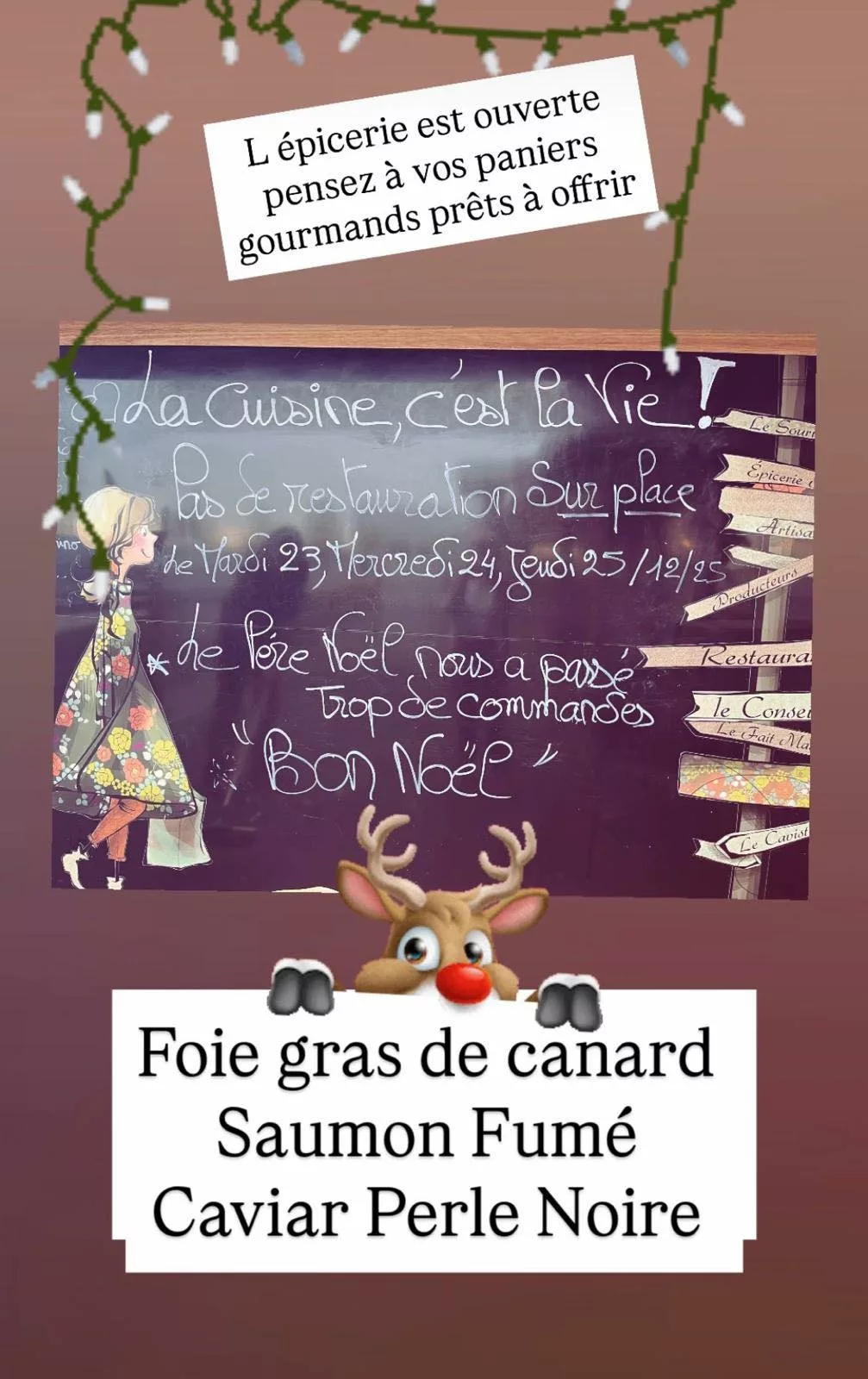 La spécialité du lieu : La grande spécialité de la maison est la gamme de bocaux cuisinés "Fait-Maison" par le Chef Poudras. On y trouve également des planches apéritives dînatoires, une cave à vins sélectionnée, des produits du terroir normand (bio et artisanaux) ainsi qu'un rayon dédié aux arts de la table pour sublimer vos repas à domicile.