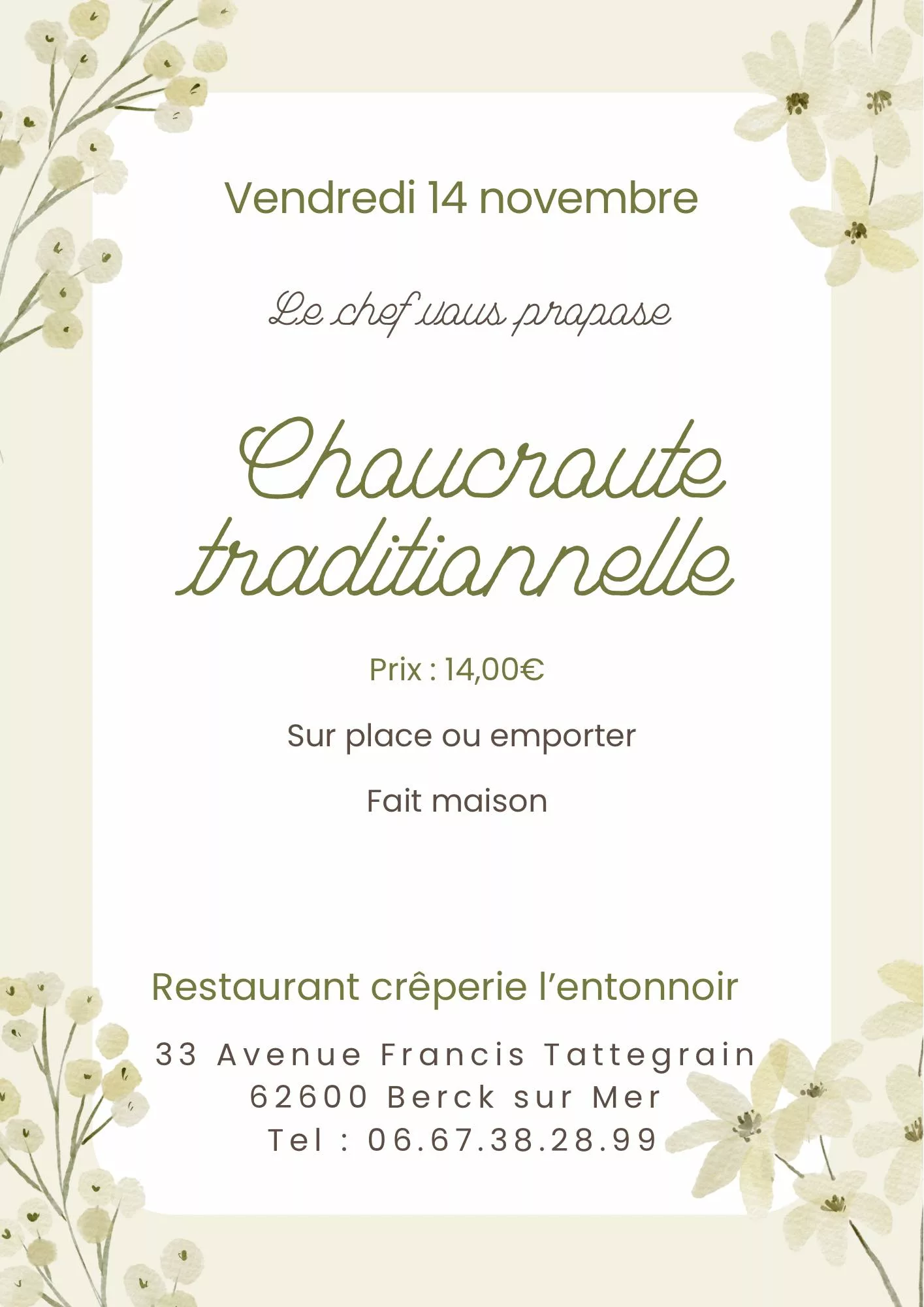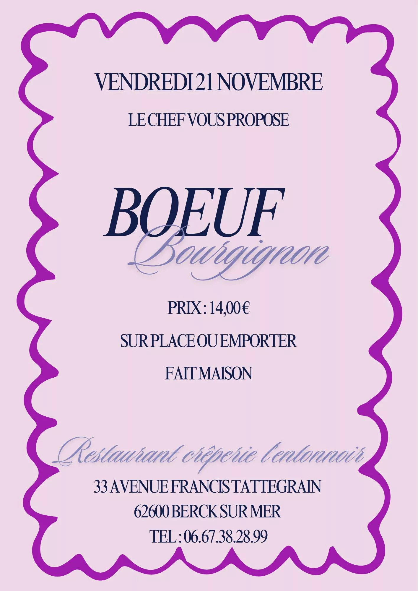 Spécialités : Crêpes, galettes (au sarrasin, spécialité maison), et glaces artisanales.