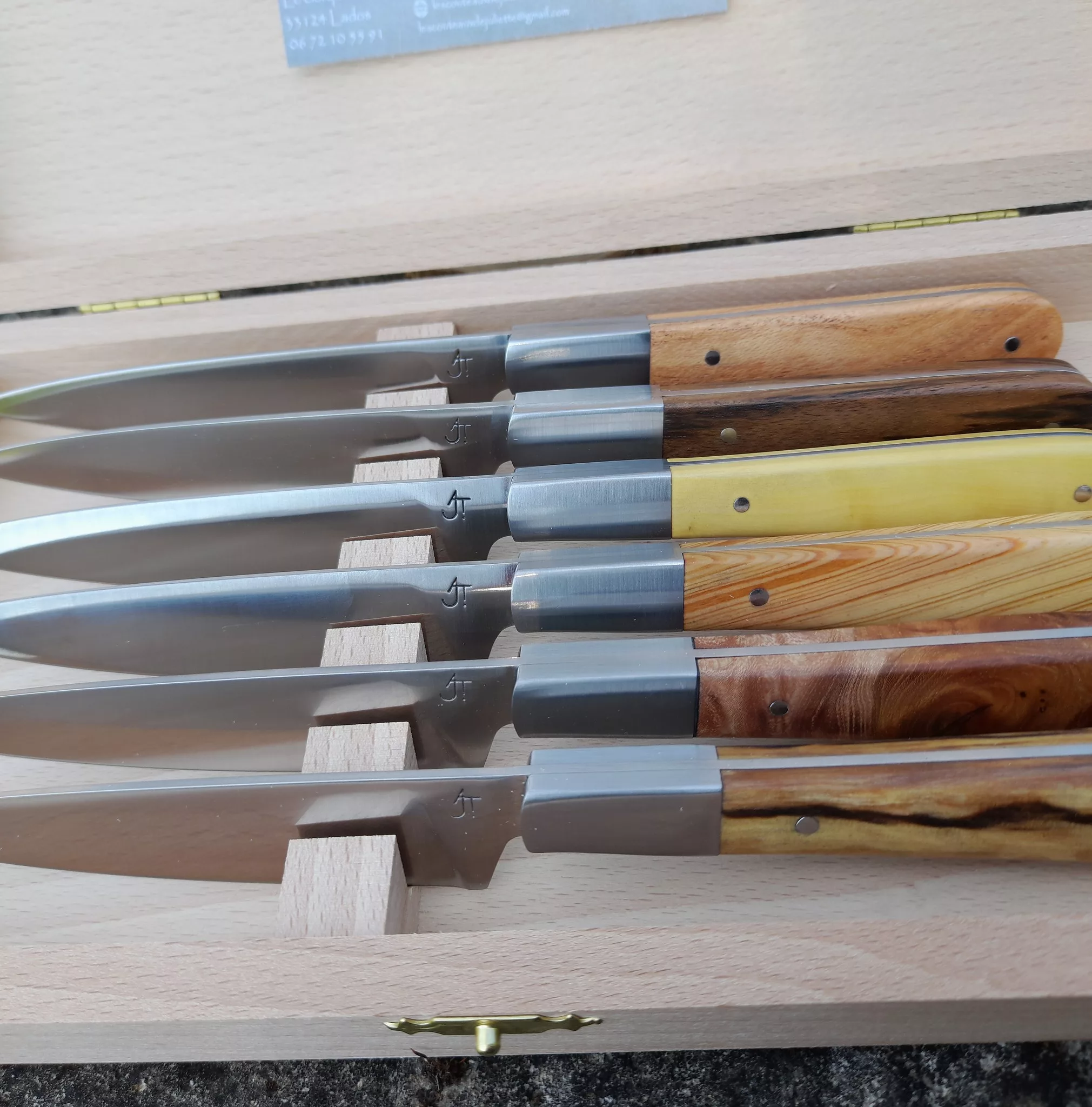 Situé à Lados, en Gironde, l'atelier Les Couteaux de Juliette est le fruit d'une reconversion passionnée d'Anne-Juliette Tanguy. Le concept repose sur la transformation artisanale de matières nobles — bois, métaux, corne — pour créer des pièces uniques. Alliant finesse et robustesse, l'artisan privilégie le travail manuel et le sur-mesure pour donner naissance à des outils tranchants de caractère. L'établissement se veut un lieu de partage et d'expertise, proposant des services personnalisés et un accueil sur rendez-vous pour faire découvrir l'art de la coutellerie artisanale.