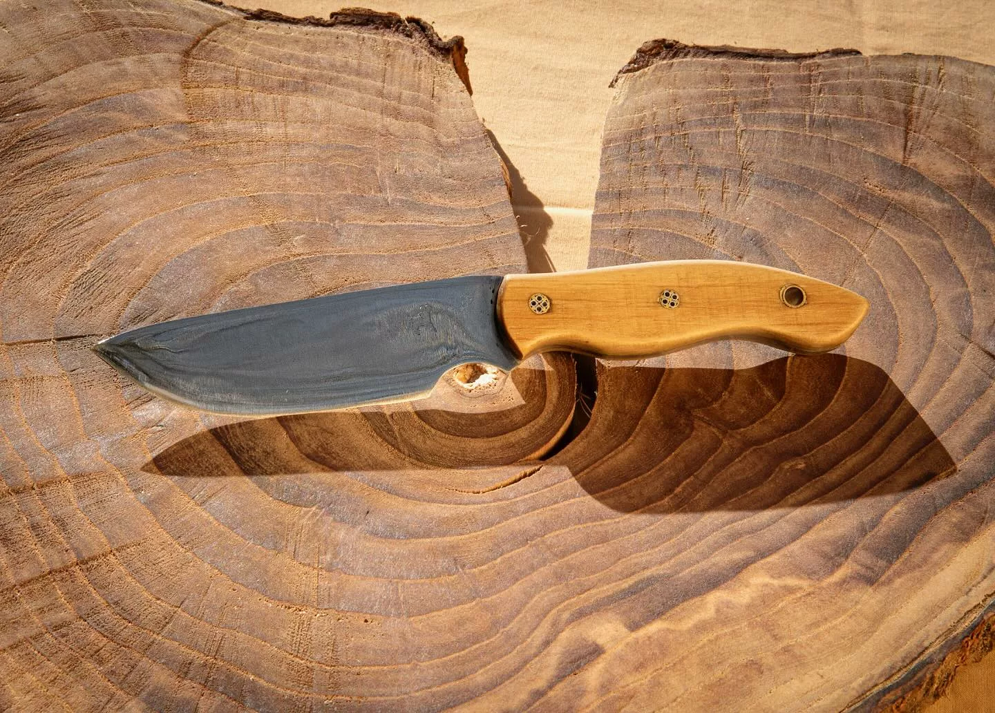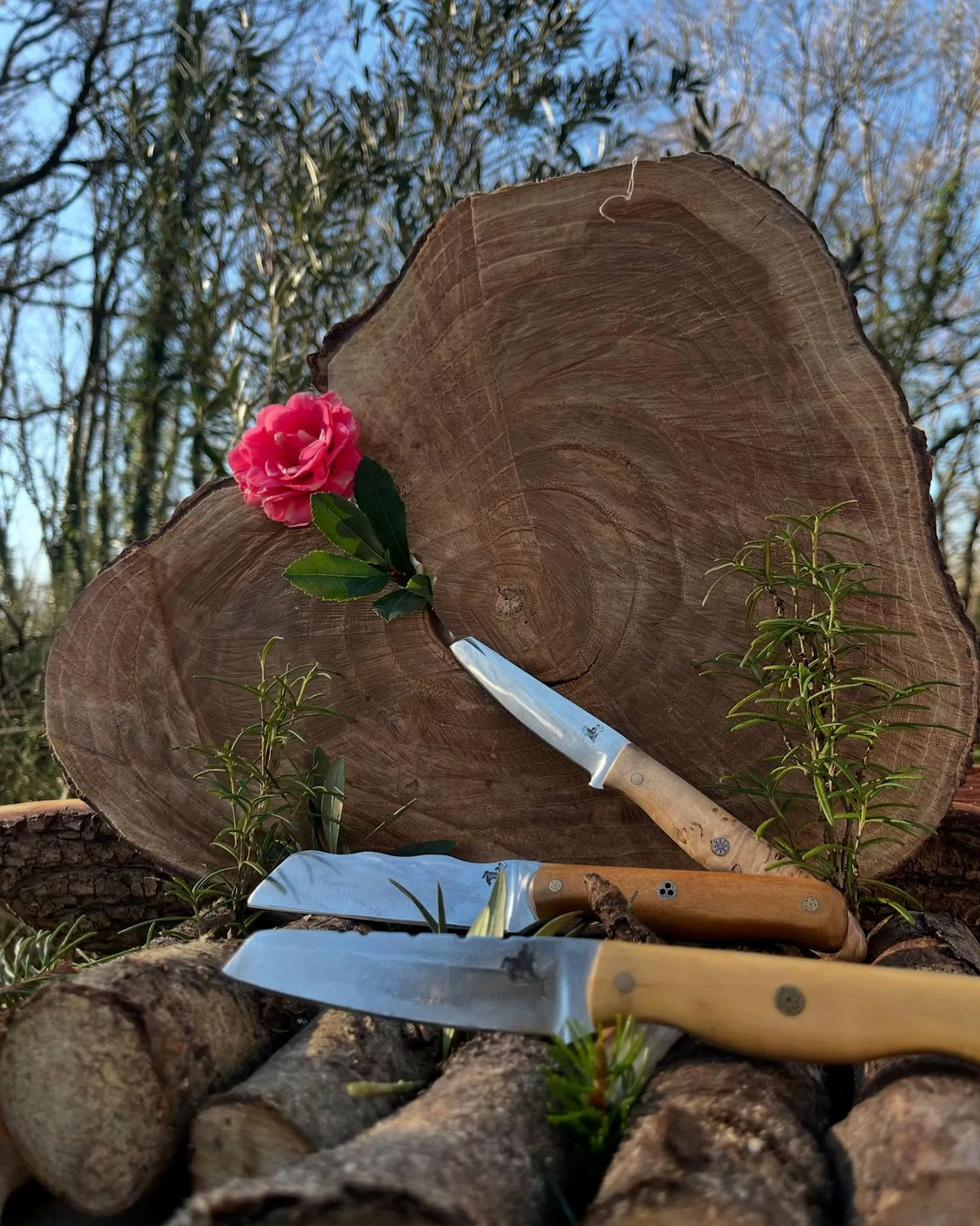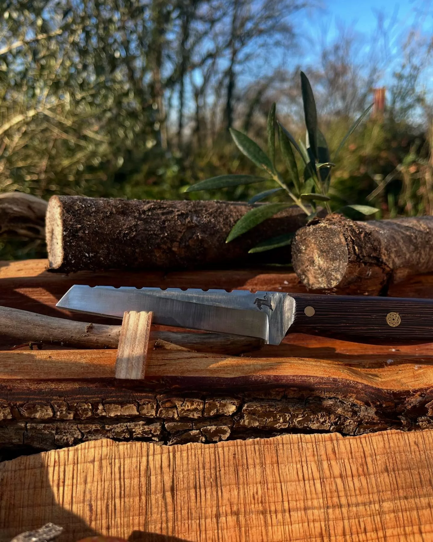 La spécialité du lieu : L'établissement se spécialise dans les couteaux fixes artisanaux (modèles Naramba, Le Hobbit, Le Cueilleur) en acier carbone (XC75, C100). Nicolas travaille des matériaux nobles comme le bois de pays (fruitiers, chêne vert) et propose des finitions avec rivets mosaïques et passe-corde.