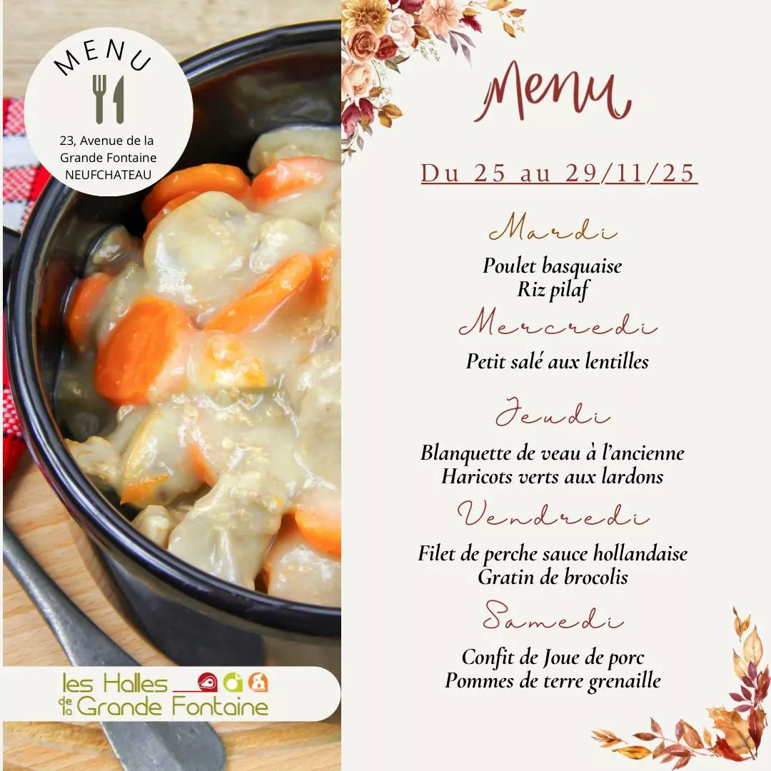 Situées au cœur de Neufchâteau, Les Halles de la Grande Fontaine offrent une expérience culinaire unique, conçue dans l'esprit d'un véritable marché couvert permanent. Cet établissement réunit en un seul lieu plusieurs univers dédiés aux produits frais et à la gastronomie. Entreprise à taille humaine privilégiant la qualité, elle propose une sélection rigoureuse de produits de saison et de spécialités artisanales. Que vous soyez à la recherche d'une viande d'exception, de fruits et légumes savoureux ou de plats cuisinés maison, l'accueil y est professionnel et chaleureux. Véritable point de ralliement pour les gourmets de la région, ces halles modernes incarnent un engagement fort pour le goût et l'authenticité, facilitant le quotidien avec des services adaptés comme le drive, tout en préservant le plaisir du shopping alimentaire traditionnel.