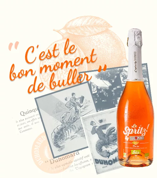 L’histoire de l’apéritif Duhomard® commence au début des années folles, dans la région de Thouars. En 1922, lors d’une partie de pêche de renom, Émile Diacre a la surprise de sortir des eaux douces de l’Argenton, un crustacé semblant tout droit venu de l’océan mais remarquable par sa couleur rouge. Dès 1926, inspiré par cette pêche miraculeuse, il crée un apéritif qu’il baptise Duhomard® et qui reste, un siècle plus tard, le symbole régional de cet esprit de partage et de convivialité. Cet apéritif au quinquina né d’une blague de potache entre commerciaux lors d’une partie de pêche de renom, continue de faire buller…