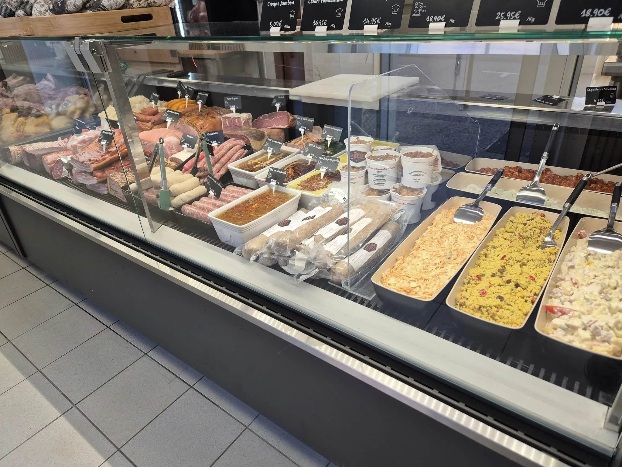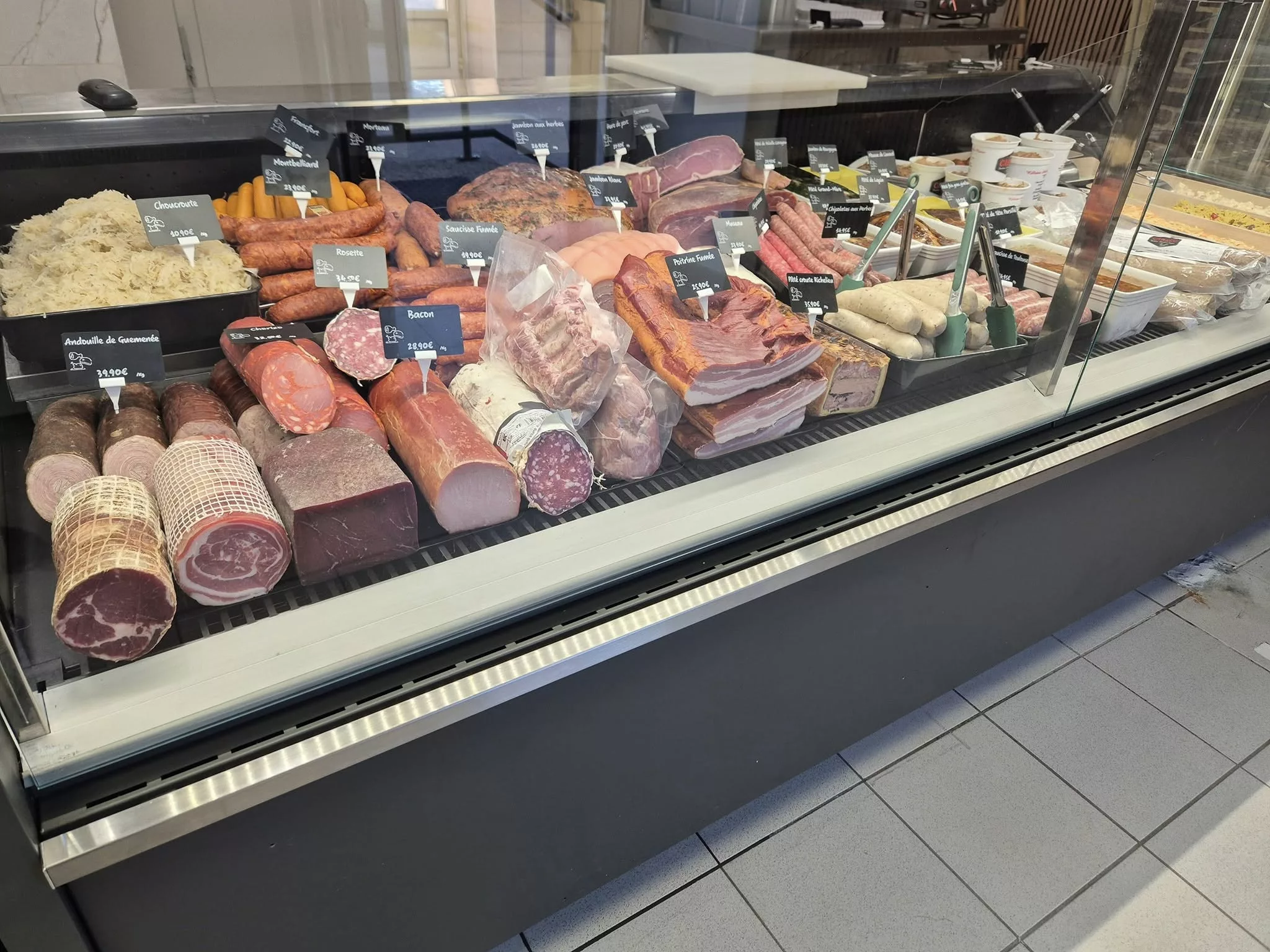 La spécialité du lieu : Andouillette de Troyes (récompensée nationalement) Produits de fête : foie gras, terrines, mets d’exception Saucisses & créations charcutières maison Colis viandes (bœuf, veau, volaille) Planches apéritives charcuterie/fromage Service traiteur personnalisé pour événements