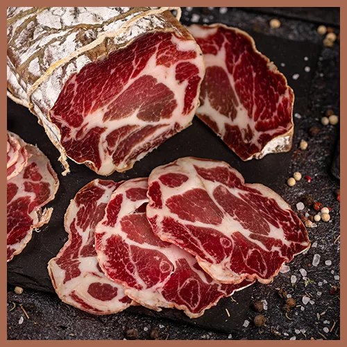 La spécialité du lieu : Charcuterie AOP : Prisuttu, Coppa et Lonzu de race Nustrale, affinés lentement selon les rites ancestraux. Incontournables : Figatelli (en saison), A Valeta (joue séchée) et Panzetta savoureuse. Huile d'Olive : Une production d'huile extra vierge issue de la variété Germaine, au goût fruité et intense.