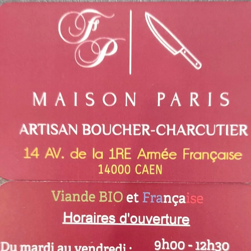Ancrée dans une tradition familiale transmise depuis trois générations, la Maison Paris (Caen) et son établissement À la Côte de Nacre (Ouistreham) sont des références de la gastronomie normande. Sous la direction de Florentin Paris, ces boucheries-charcuteries d'excellence privilégient les circuits courts en sélectionnant des viandes de terroir issues de producteurs locaux. Outre la boucherie traditionnelle, la maison est réputée pour ses produits tripiers et sa charcuterie artisanale. Le service traiteur propose des solutions sur-mesure pour les événements familiaux et d'entreprise, ainsi qu'une large gamme de plats à emporter. Savoir-faire artisanal, fraîcheur et passion du produit définissent l'identité de cette institution du Calvados.