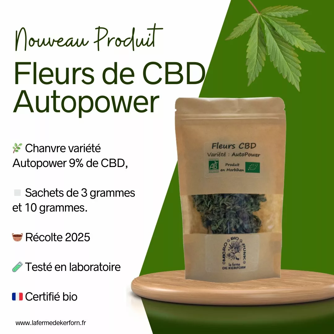 Bienvenue chez Microbiopunk, à la Ferme de Kerforn (Pluvigner). Notre nom résume notre philosophie : une production à échelle humaine (Micro), une culture sur sol vivant sans aucun intrant chimique (Bio), et un esprit libre et indépendant (Punk). Spécialisés dans le chanvre artisanal breton, nous cultivons nos fleurs de CBD et CBG avec amour, de la graine à la transformation finale, entièrement à la main. Au-delà de nos produits bien-être (fleurs, infusions, huiles), notre ferme est un lieu de vie et d'expérimentation tourné vers l'autonomie. Nous vous accueillons pour de la vente directe, mais aussi pour des ateliers, des événements et du camping à la ferme. Une aventure humaine et végétale, authentique et sans compromis.