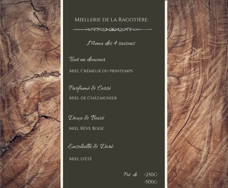 La Miellerie de la Ragotière est une exploitation apicole située à La Ragotière, 86480 Rouillé (Vienne). L'apiculteur professionnel certifié et passionné propose une production de miels locaux extraits à froid et des produits transformés faits maison. Au-delà de la vente, l'entreprise s'implique dans la transmission du savoir-faire. Elle propose des animations pour découvrir le monde de l'abeille (pour les petits et grands) et une formation pratique pour l'apiculture ("Les clefs de la Ruche"). Les retraits de produits et les visites se font sur rendez-vous en fin de journée et le week-end.