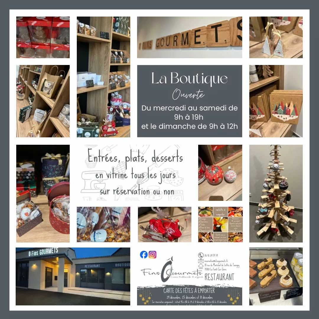 La spécialité du lieu : Le restaurant se distingue par sa cuisine de saison évolutive et ses pâtisseries fines "sur mesure" (gâteaux d'événements, desserts à l'assiette). L'offre est complétée par une boutique proposant des plats à emporter, des planches apéritives salées/sucrées, ainsi que des kits cuisine et des coffrets gourmands artisanaux.
