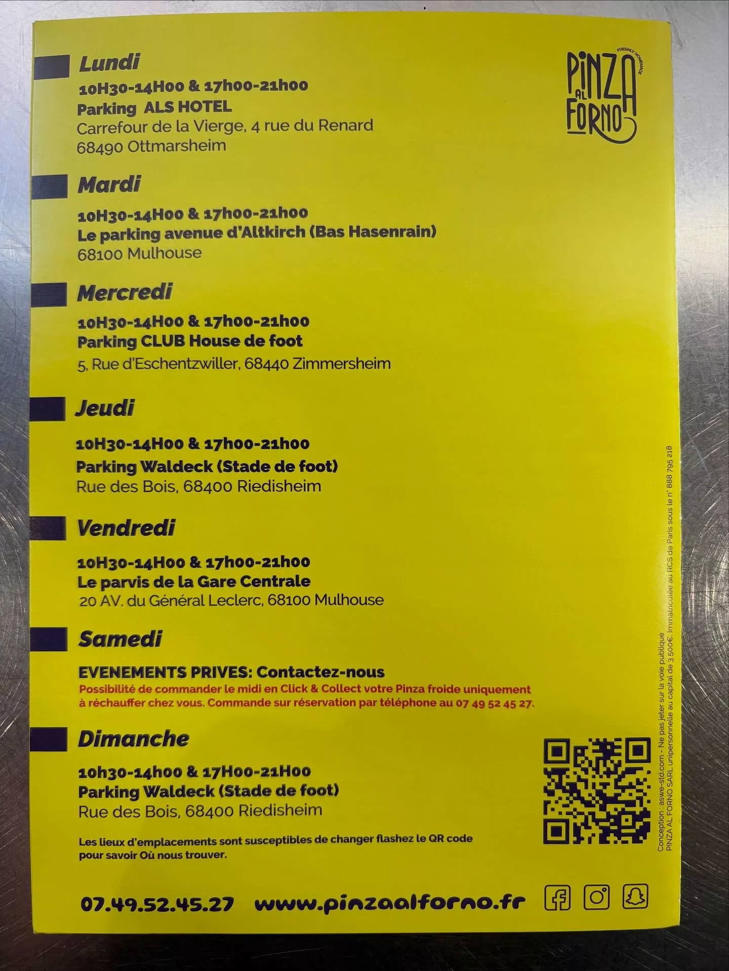 Pinza Al Forno est un food truck basé dans le secteur de Mulhouse, spécialisé dans la préparation de la Pinza Romana, l'ancêtre de la pizza, inspirée de la Rome Antique. L'entreprise met l'accent sur l'excellence d'une pâte légère et digeste, élaborée à partir d'un mélange exclusif de farines italiennes (blé, riz, soja) avec un haut taux d'hydratation, réduisant ainsi les calories et le gluten. La Pinza Al Forno propose ses créations faites maison, utilisant des ingrédients frais pour une expérience gustative unique. Le food truck est également apprécié pour son équipe dynamique, son accueil agréable et sa capacité à prendre les commandes à emporter, y compris en Click & Collect pour les Pinzas froides à réchauffer.