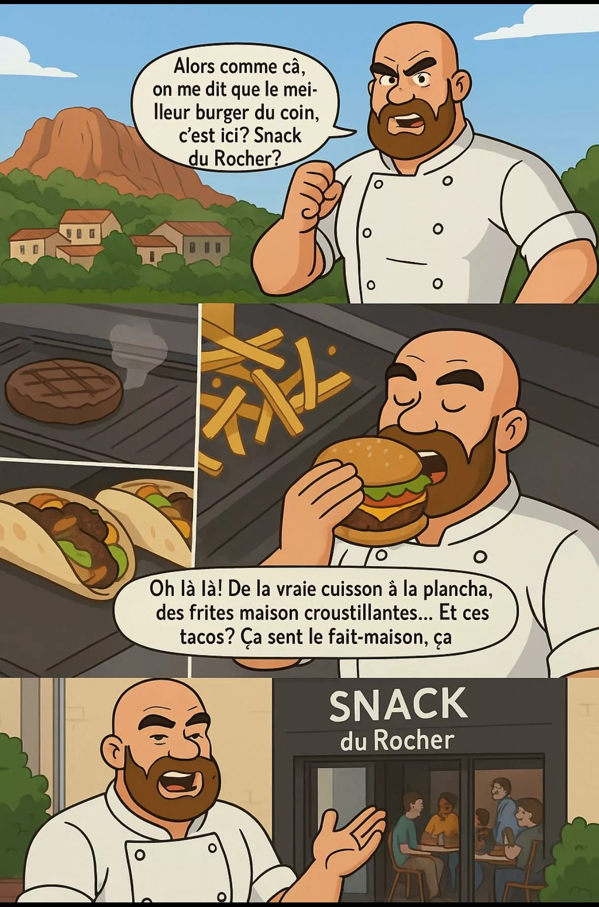 Le Snack du Rocher est un restaurant fixe situé à Roquebrune-sur-Argens (83) qui propose une sélection diversifiée de plats dans une atmosphère agréable, avec une magnifique terrasse. L'établissement propose du fast-food savoureux et met l'accent sur les plats sains, notamment un buffet de salades et des wraps. Ils sont très appréciés pour leurs options Halal et Végétariennes. Le Snack du Rocher propose la vente à emporter, un parking gratuit, et est accessible aux personnes à mobilité réduite.