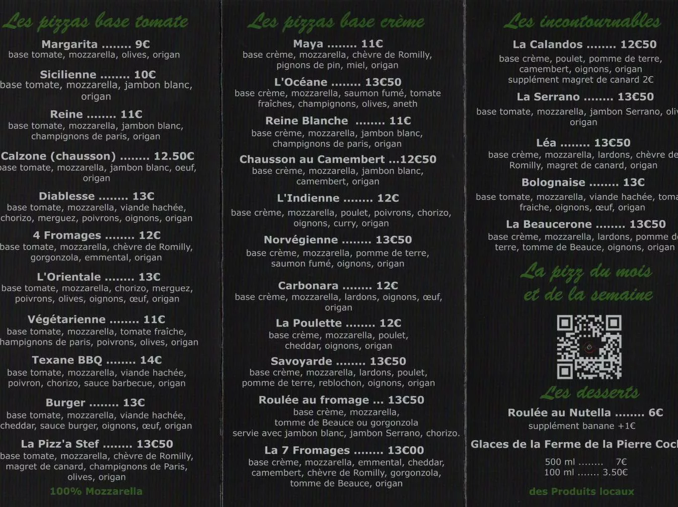 Stef-O-Pizz est un camion pizza (food truck) qui vous accueille du lundi au vendredi sur différents emplacements dans les départements de l'Eure-et-Loir (28) et du Loir-et-Cher (41). Le responsable est Stéphane Casorati. Le camion est spécialisé dans les pizzas cuites au four à bois, élaborées avec des produits frais et locaux pour garantir des recettes savoureuses comme la "Reine", la "Carbonara" ou la "Beauceronne". En plus de son service régulier, Stef-O-Pizz propose la privatisation de son camion pizza food truck pour tous vos événements privés (fêtes, mariages, réceptions), se déplaçant directement chez vous pour un service de qualité.