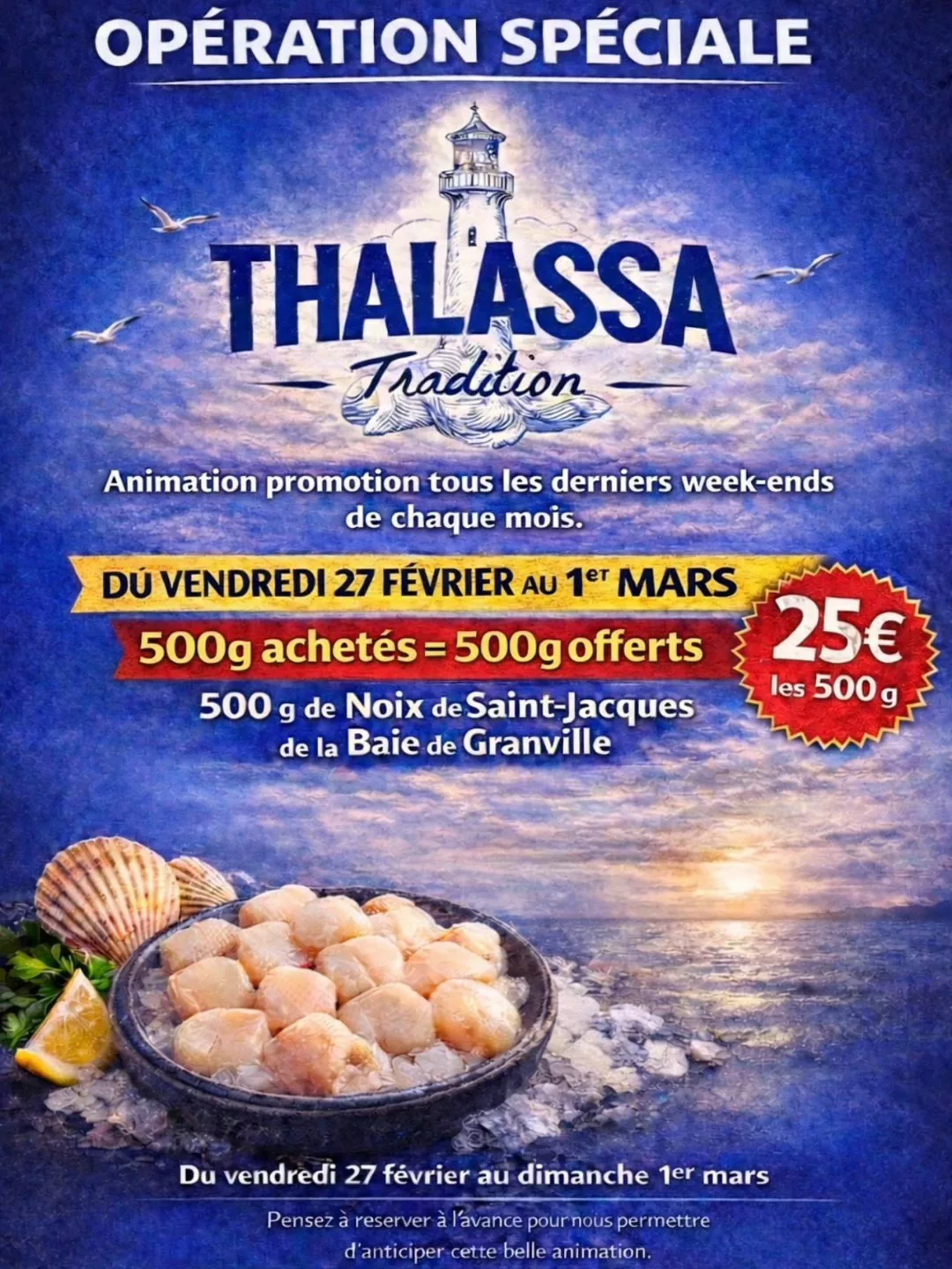 Située à Blainville-sur-Mer, Thalassa Tradition est une maison d'ostréiculteurs et mareyeurs passionnés depuis 1985. Le concept repose sur une maîtrise complète de la filière, de l'élevage en pleine mer jusqu'à la dégustation. Alliant héritage familial et innovation, l'établissement propose un magasin de vente directe, une boutique en ligne et une cabane de dégustation conviviale face aux parcs. Reconnue pour sa rigueur, l'entreprise fournit tant les particuliers que les professionnels, garantissant des produits d'une fraîcheur absolue issus du riche terroir marin de la Manche.