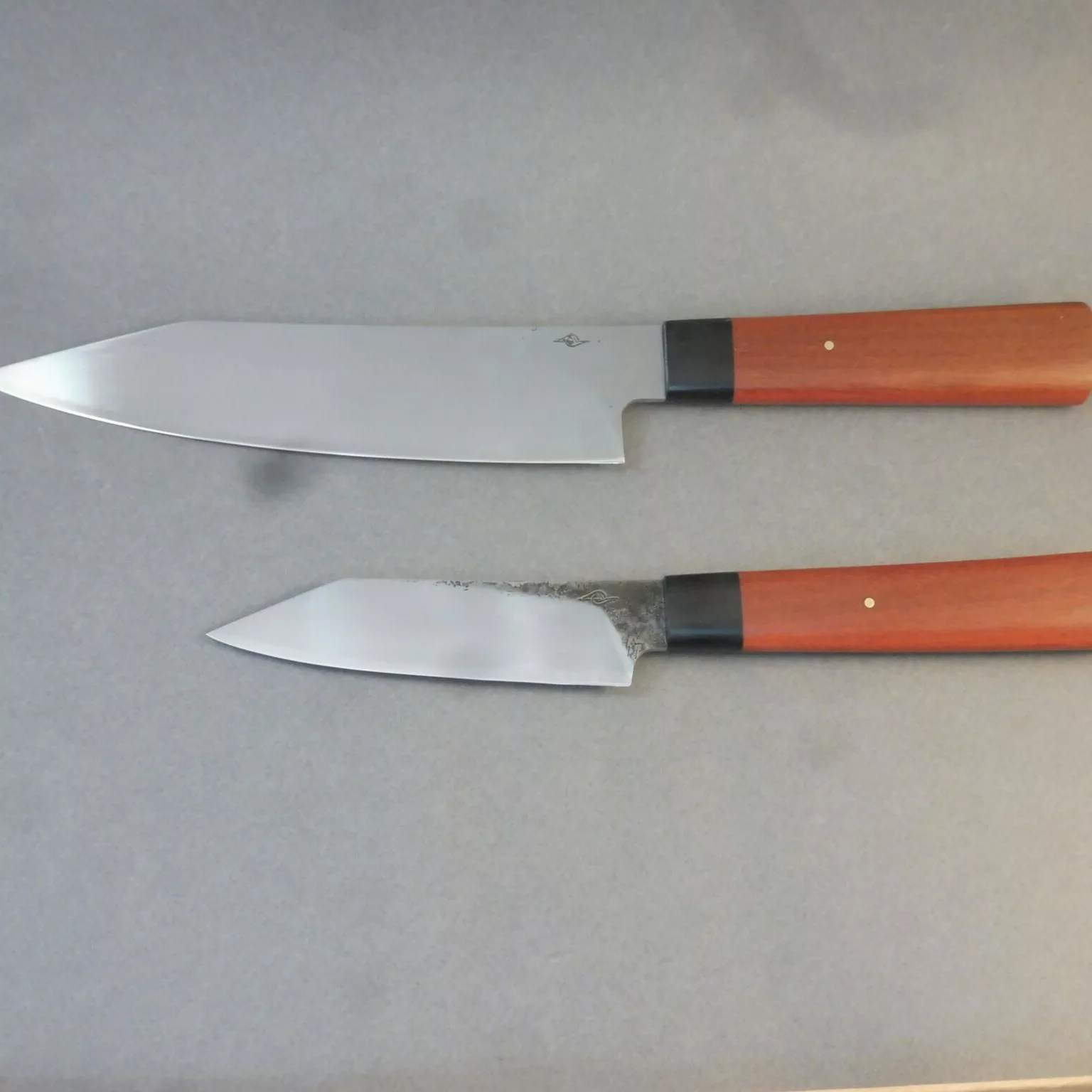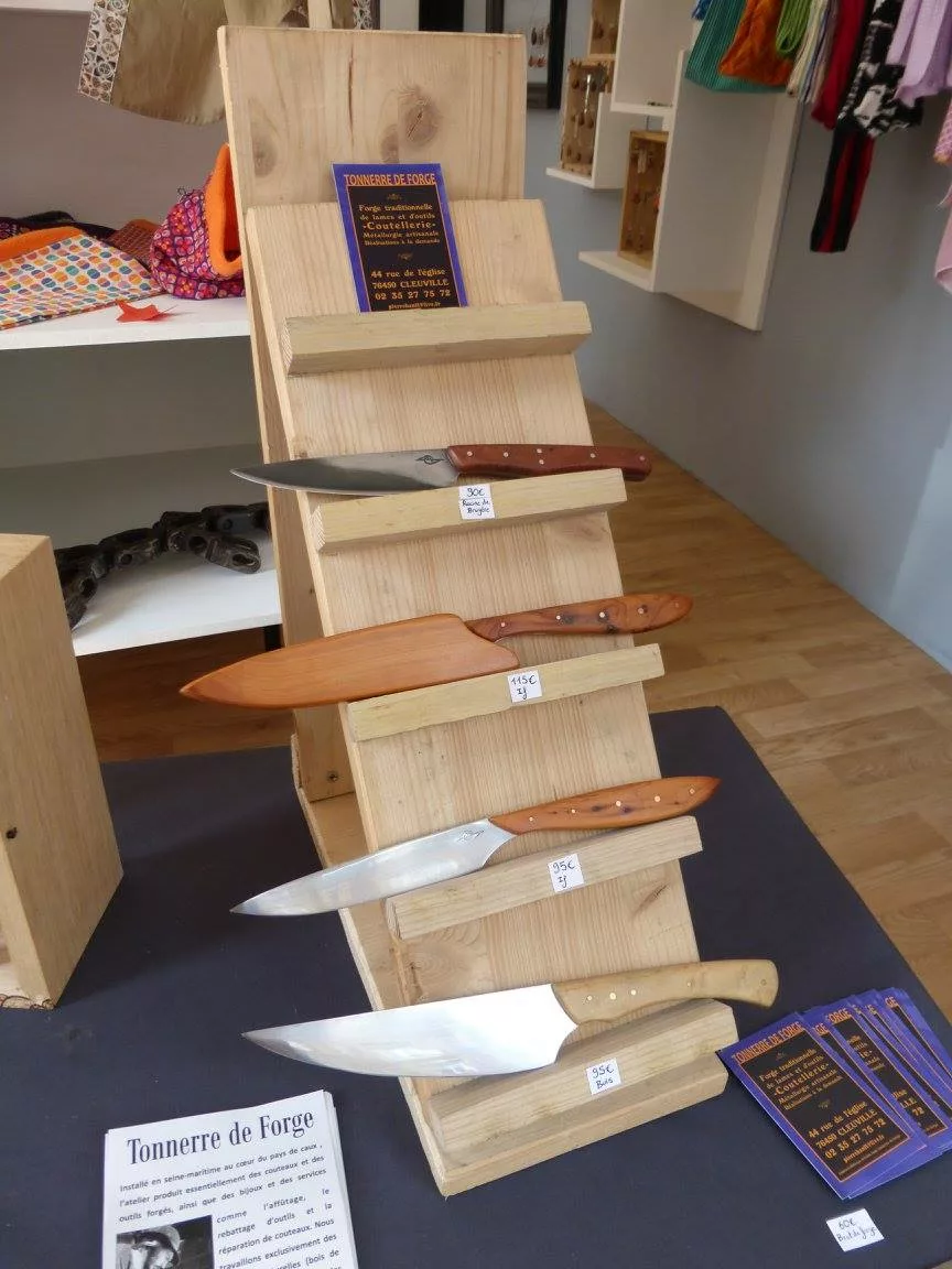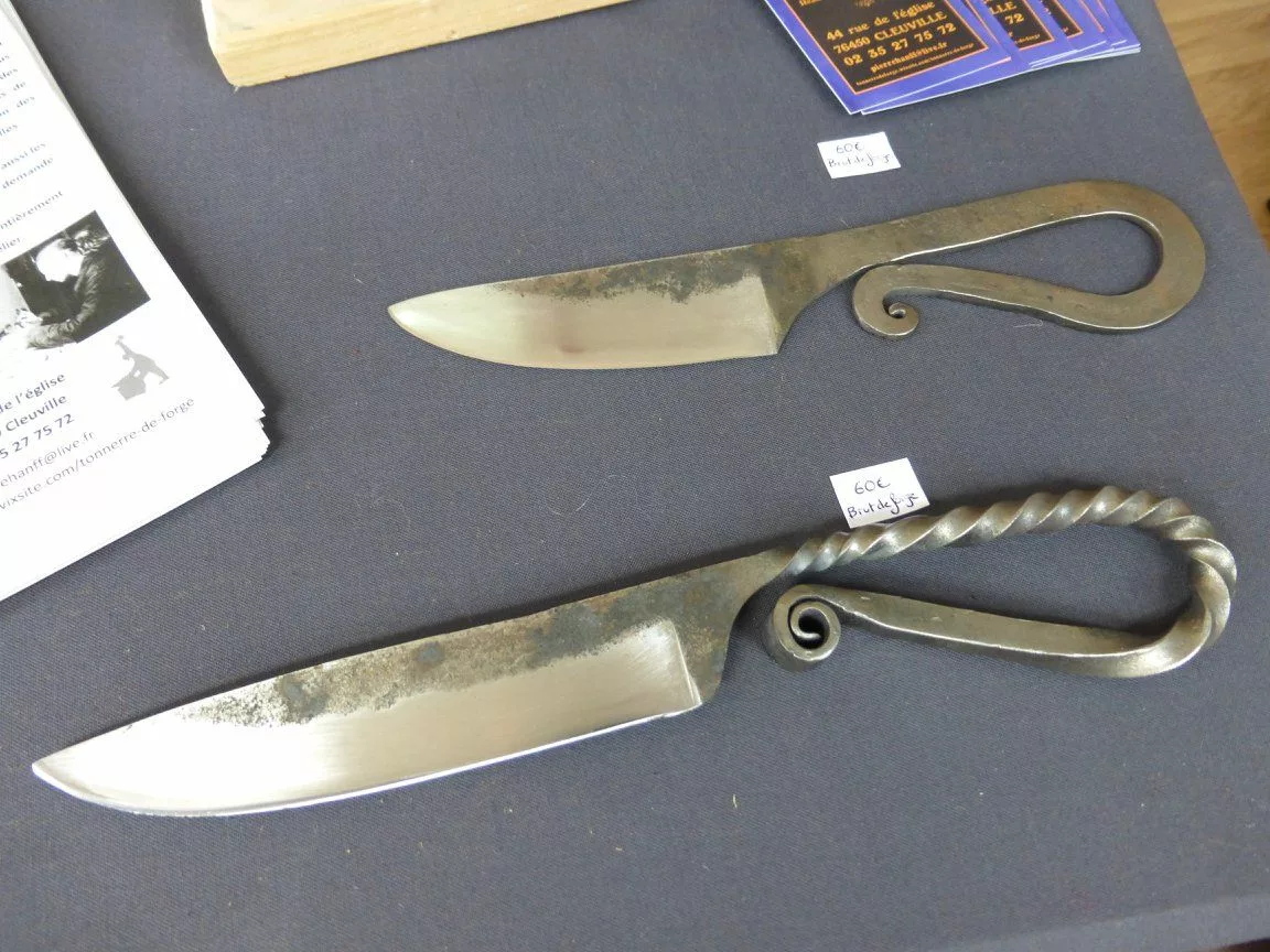 Bienvenue chez Tonnerre de Forge, l'atelier artisanal de Frédéric, forgeron coutelier basé à Cleuville (76), en Seine-Maritime. Dans le feu et le fracas de l'enclume, Frédéric donne vie à des pièces d'exception façonnées principalement en aciers carbone et en aciers damassés qu'il réalise lui-même. Spécialisé dans les couteaux de cuisine de haute performance et les couteaux pliants traditionnels (type deux clous ou piémontais), il propose des créations allant de l'utilitaire sobre au couteau d'art richement guilloché. Chaque pièce est unique, alliant des bois de pays ou des matières nobles à un travail du métal rigoureux. Un savoir-faire normand authentique pour ceux qui recherchent un outil de caractère, forgé avec passion pour durer.