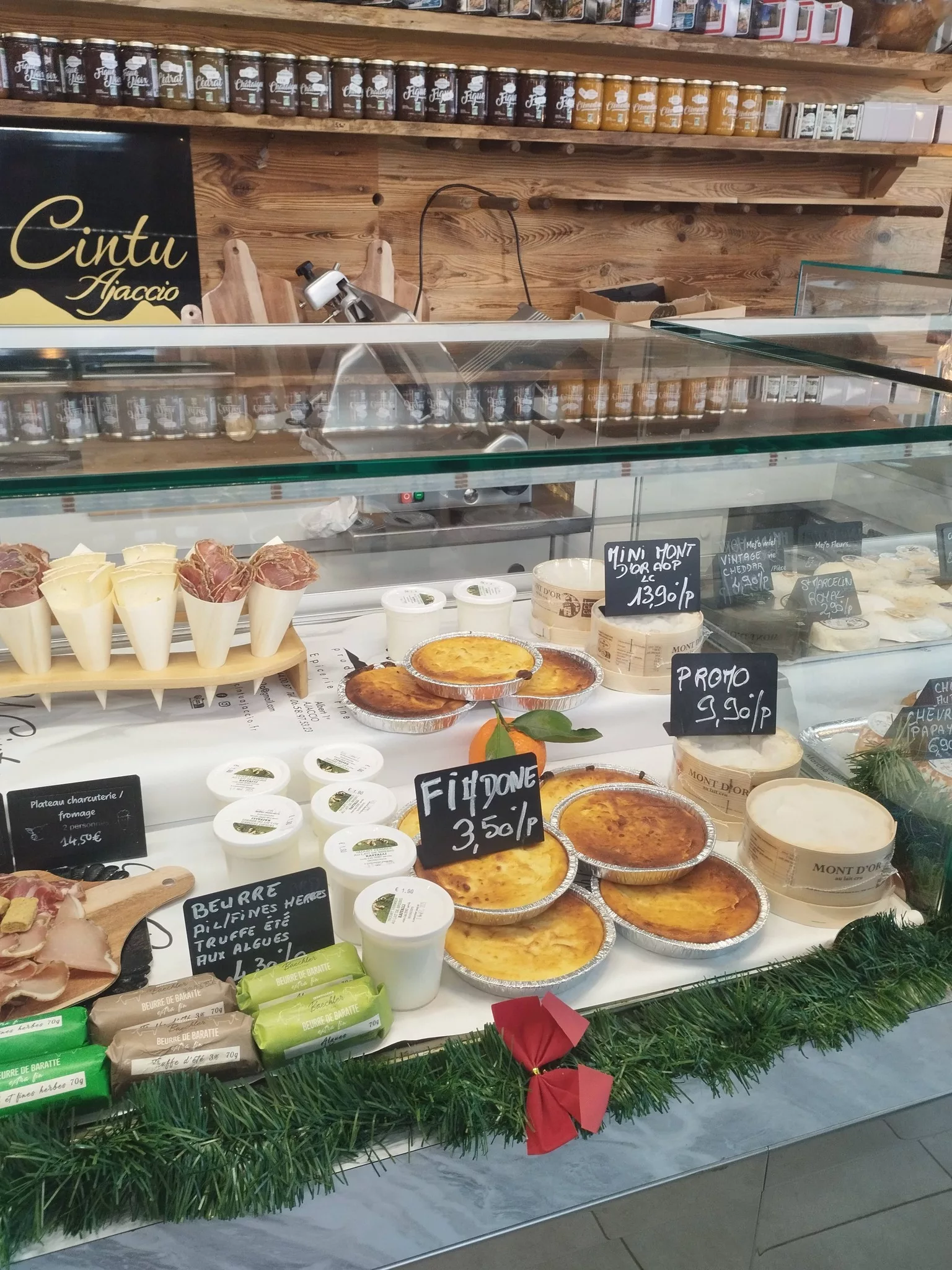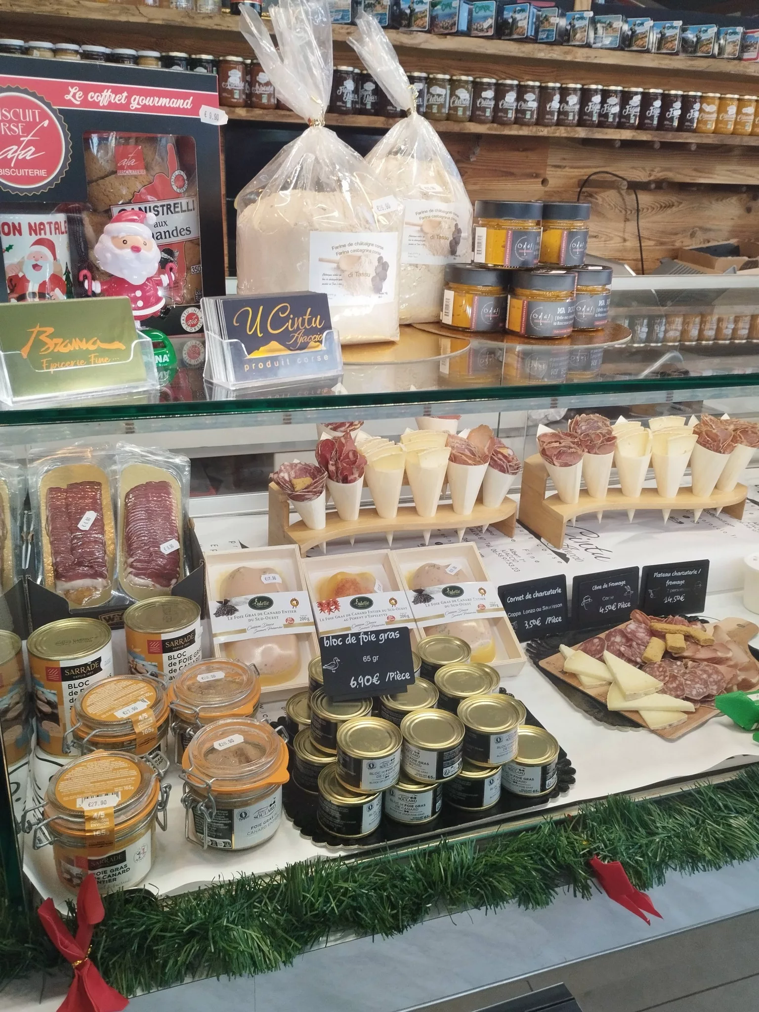 La spécialité du lieu : Charcuterie d'Exception : Jambon fermier, Coppa, Lonzo et Figatellu frais (disponible dès novembre). Fromages de Caractère : Tommes de brebis et de chèvre artisanales (entières ou à la coupe). Cave & Spiritueux : Sélection pointue de vins (ex: Castellu di Baricci) et Whiskies corses (P&M). Épicerie Sucrée : Miels de châtaigneraie, nougats à la myrte et Canistrelli artisanaux.
